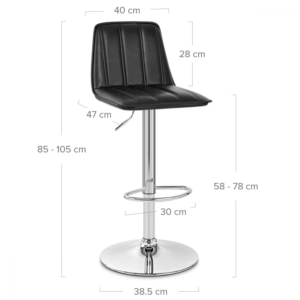 Präsentieren Sie Ihrem Zuhause ein modernes Flair mit dem Kunstleder Barhocker Chrom Pulse. Die tiefe gepolsterte Rücklehne, gemeinsam mit dem weichen Sitz, prahlt mit einem hübschen Kunstleder, welches ein außergewöhnliches Stickmuster aufweist. Zusätzlich wird durch den verchromten Stahlrahmen und den gewölbten Fuß eine unschlagbare Stabilität geboten. Außerdem lässt sich dieser Hocker um 360-Grad drehen und ganz einfach, mit Hilfe eines Gas-Lifts, stufenlos in der Höhe verstellen. Die T-förmige Fußablage gibt den letzten stylischen Schliff für Ihre Umgebung während Ihre Beine ausruhen dürfen. Natürlich fehlt hier kein Bodenschutz und Sie müssen sich somit keine Gedanken um Ihren Boden machen.