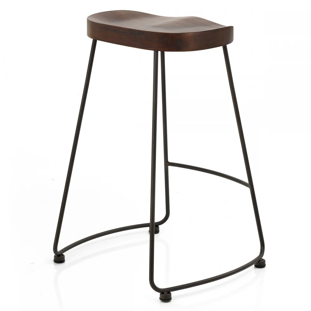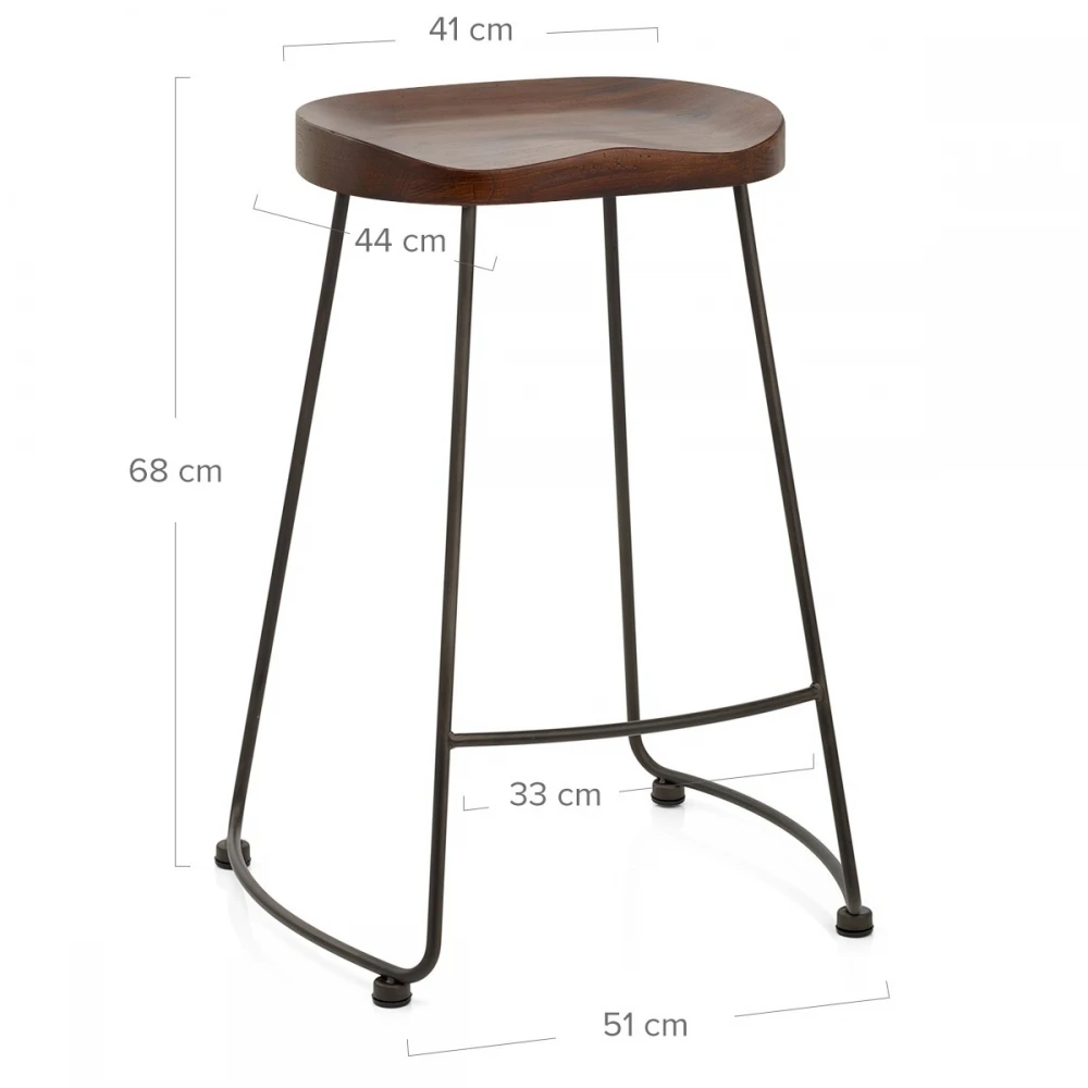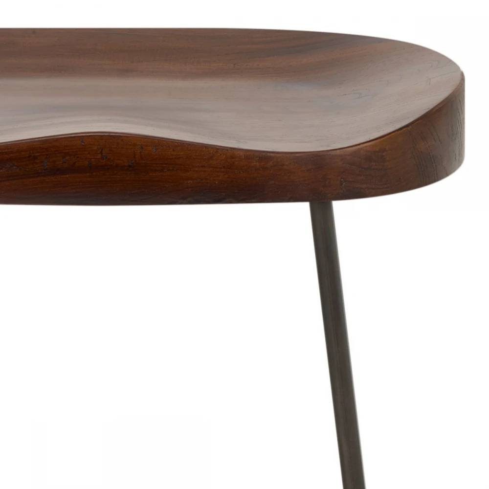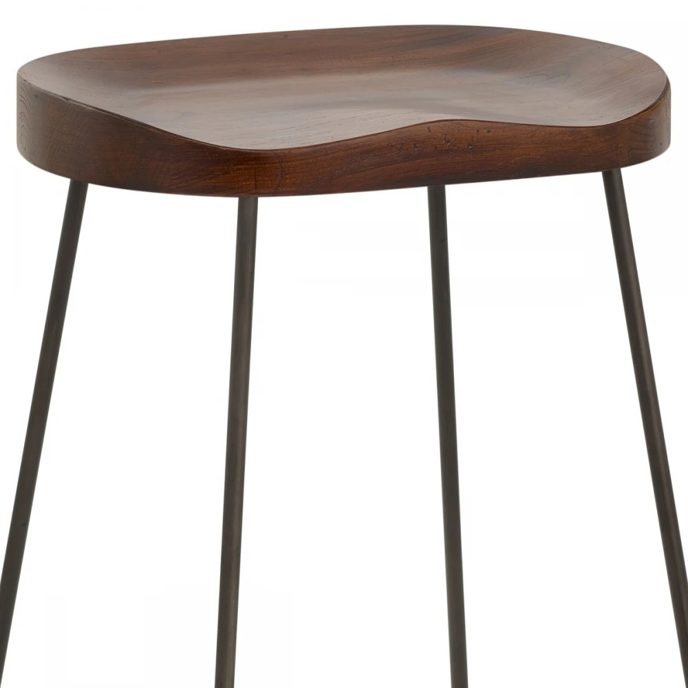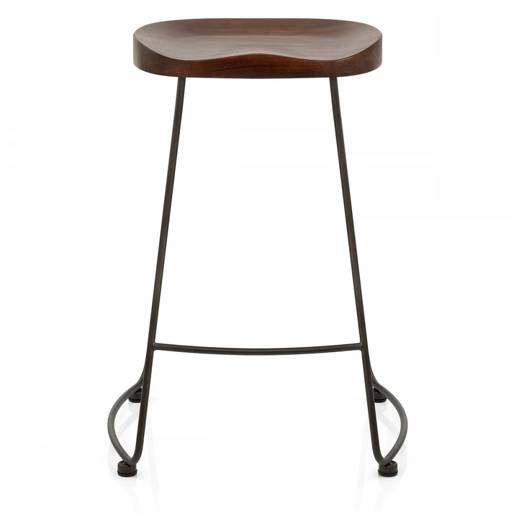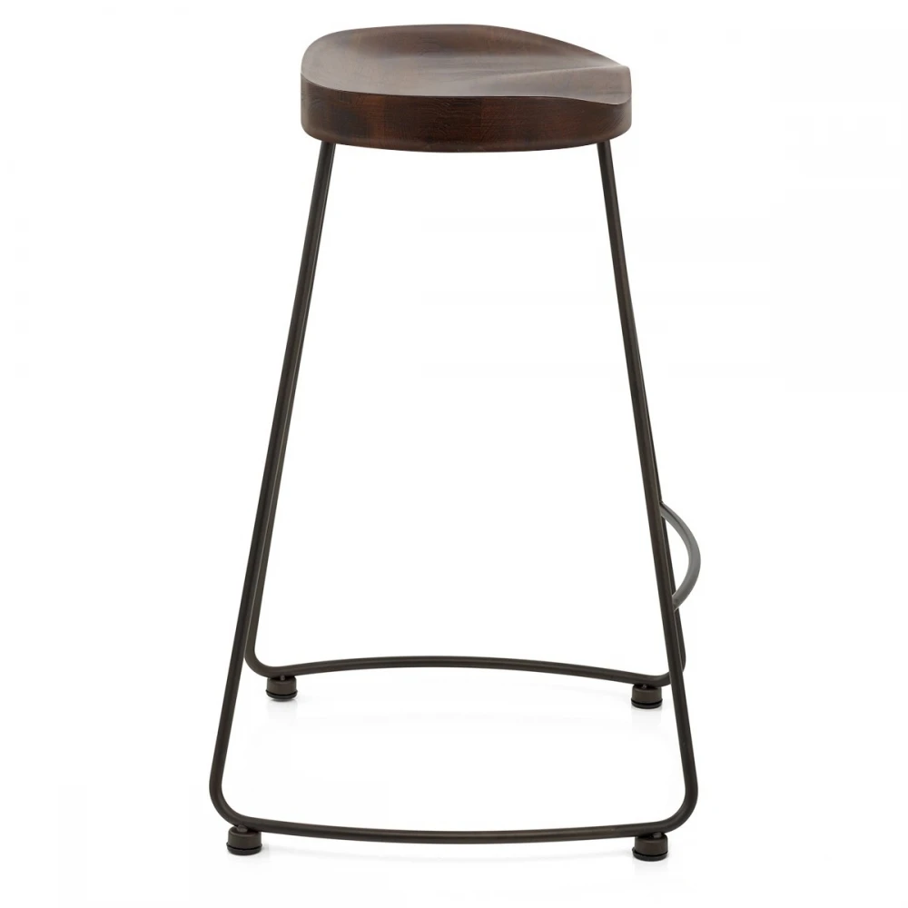 Der schöne rückenlose Bloc Barhocker in dunkel hat einen Holz Sitz mit runder Form, um den natürlichen Form des Körpers zu entsprechen und ein bequemes Gefühl zu sichern. Das dunkle Holz-Finish hat eine rustikale Verarbeitung, die zu dem unteren Rahmen passt. Aus massivem, geschweißtem Stahl gefertigt, hat der feste Höhenrahmen ein gealtertes Finish und eine integrierte Fußstütze an der Vorderseite für eine zusätzliche Unterstützung. Bodenschützer sind unter dem Rahmen angebracht, um Schäden am Boden Ihres Barbereichs zu vermeiden.