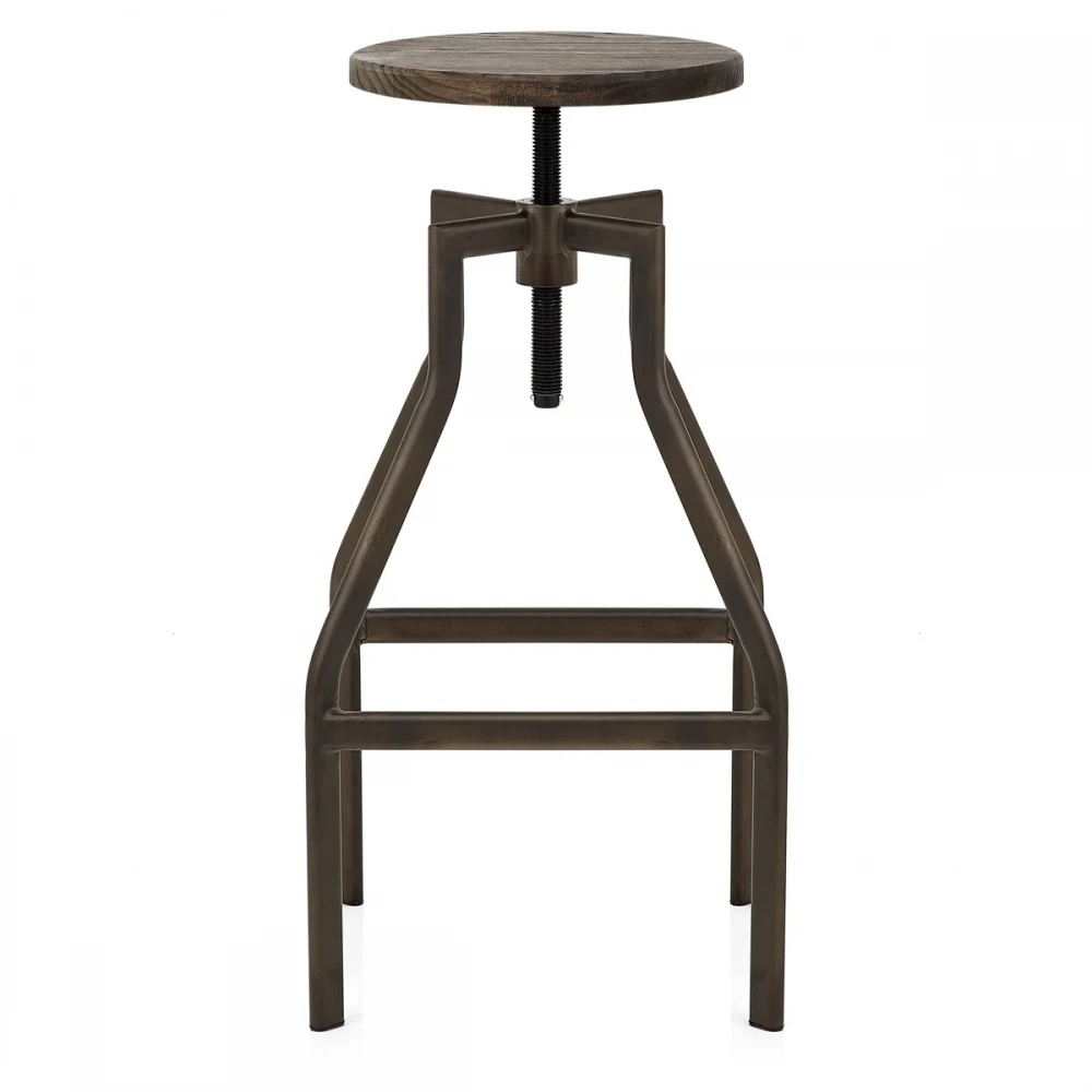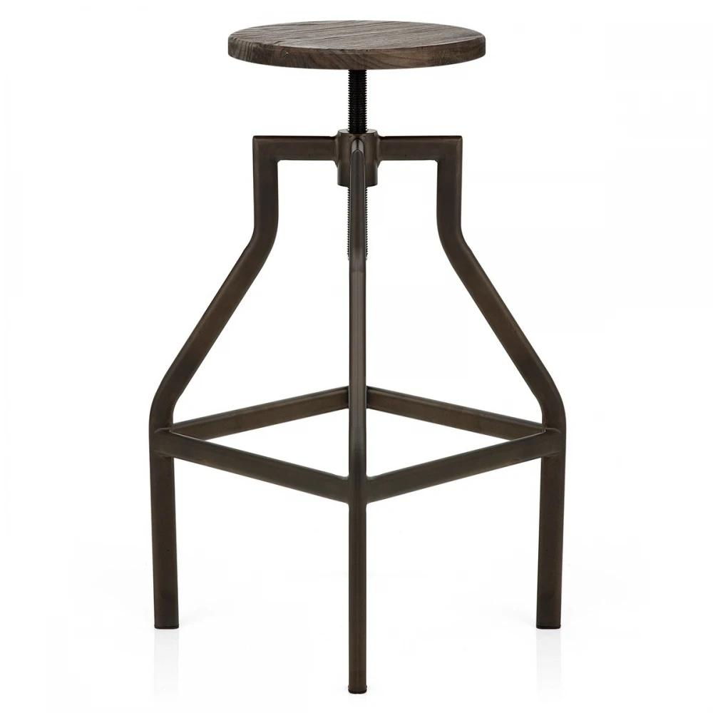 Kombiniert aus einem markanten Vintage Stil sowie einer hohen Stabilität durch die vier festen Beine ist der Barhocker Vintage Revolution für jeden Raum geeignet. Der runde, aus solidem dunklen Holz gefertigte Sitz liegt auf einem exponierten Drehmechanismus, welcher Ihnen erlaubt, die Höhe des Barhockers ganz nach Ihren Wünschen zu verstellen. Zusätzlich verleiht der authentische, antike Metallrahmen diesem Modell einen echten Industriestil. Die Querbalken unterstützen die Standfestigkeit und können gleichzeitig als Fußauflage verwendet werden.