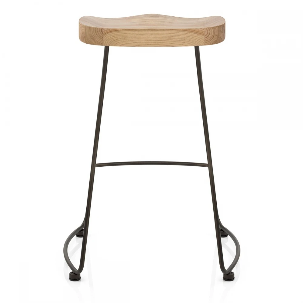 Ein rustikales, aber raffiniertes Stück, der Bloc Barhocker in Hell strahlt Originalität und Charme aus. Das dicke, solide Holzsitz hat ein angenehmes, konturiertes Design mit einem atemberaubenden Leichtholz-Finish. Im Gegensatz zum leichten Sitz hat der Stahlrahmen ein dunkles, antikes Finish, welcher einen zeitlosen Charakter ausstrahlt. An der Küchenhöhe orientiert, ist der Barhocker perfekt für den Einsatz an der Frühstücksbar und kann danach leicht verstaut werden. Eine Fußstütze ist in dem Design integriert, zusammen mit Pads, um Schäden auf Ihren Fußböden zu vermeiden.