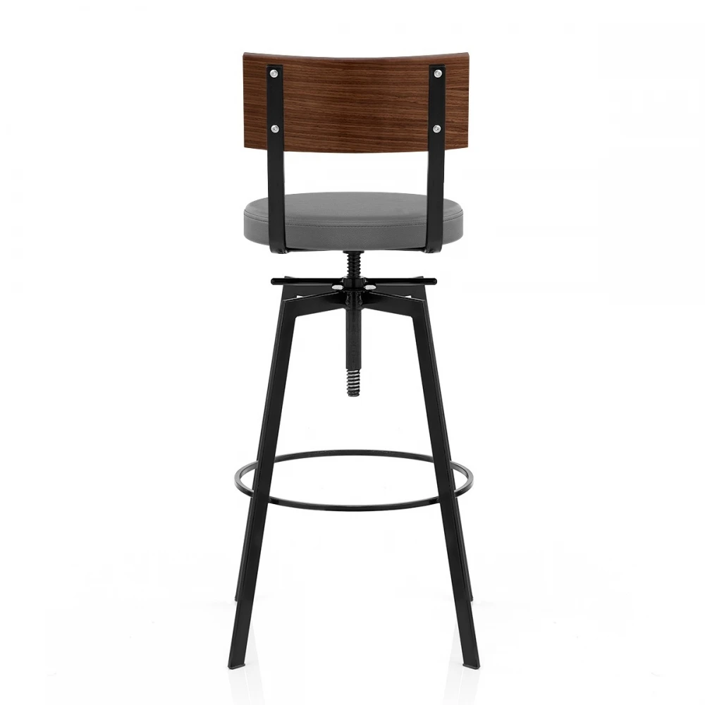 Ohne Mühen kombiniert der Urban Industrial Barhocker eine Auswahl an kontrastierenden Materialien. Die runde Sitzfläche ist mit weichen Kunstleder bezogen und bequem gepolstert. Die Höhe ist einfach anpassbar mit einem feststellbaren Drehmechanismus versehen. Ein rustikales Ambiente wird durch die erhöhte Rückenlehne aus massivem Holz mit Walnuss-Finish erzeugt und wird eine natürliche Wärme an Ihre Bar bringen. Der Metallrahmen ist unruhig gehalten, was dem Barhocker den industriellen Touch verleiht. Die kreisförmige Stützstange dient gleichzeitig als verstärkung des stabilen Rahmens und als handliche Fußablage.