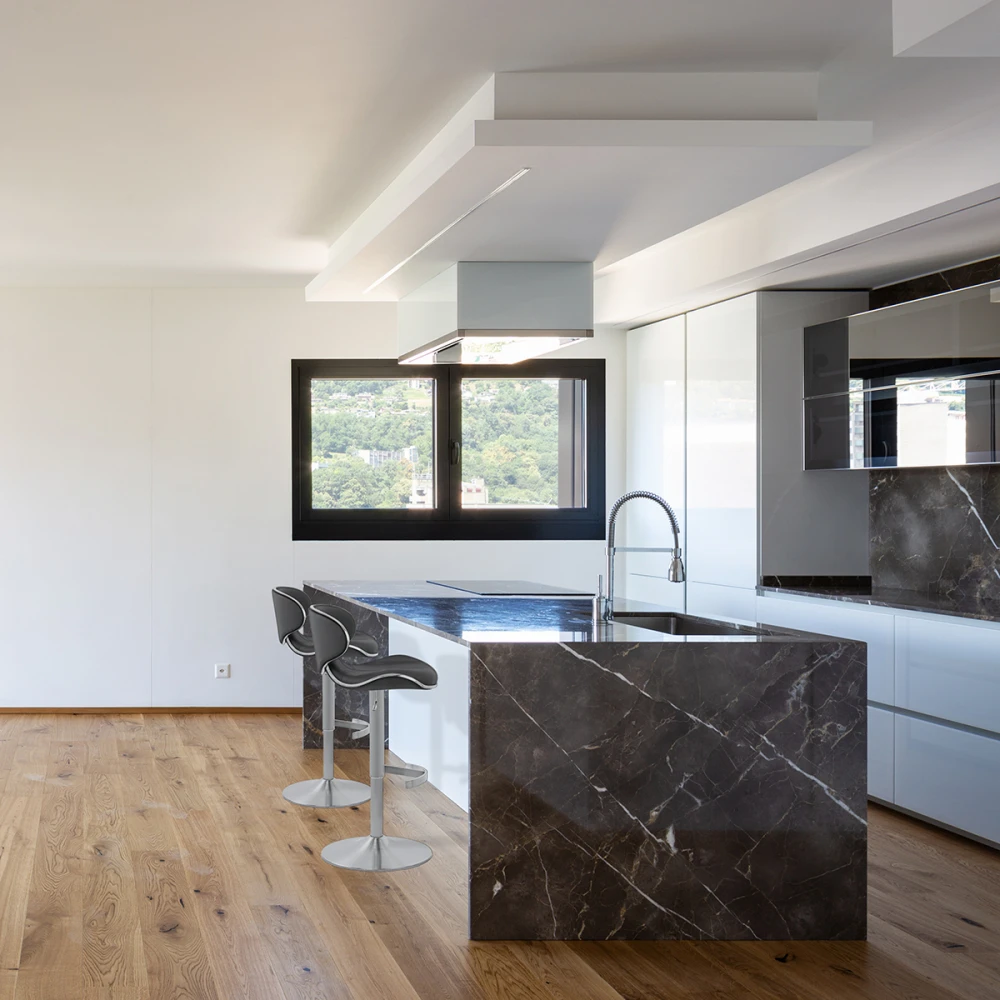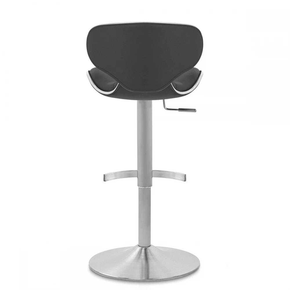 Nur die Vorderseite des schwarzen Barhockers ist mit Echtleder bezogen. (Das heißt, der Vorderbezug des Sitzes besteht aus echtem Leder und der Rückenbezug aus Kunstleder).