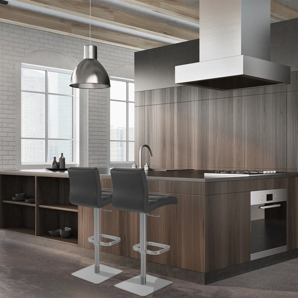 Werden Sie schwach mit unserem Modell Lush Echtleder vor seinem einnehmenden Aussehen und seinem absoluten Charme. Sein Überzug ist aus Echtleder und mit dichtem Schaumstoff gepolstert. Feine horizontale Nähte auf dem Leder verstärken den Design-Effekt des Modells und sie unterstreichen die Dicke der Unterlage sowohl was die Rückenlehne als auch den Sitz betrifft. Sein Untergestell aus gebürstetem Chrom verleiht ihm ein mattes, sehr gepflegtes Finish, und er ist ausgestattet mit einer viereckigen Fußstütze, die an die große elegante Basisplatte erinnert. Die Höhe ist verstellbar und der Sitz kann um 360° gedreht werden. In wenigen Worten: Stabilität, Design und Solidität! Sie sollten ihn nicht verpassen!