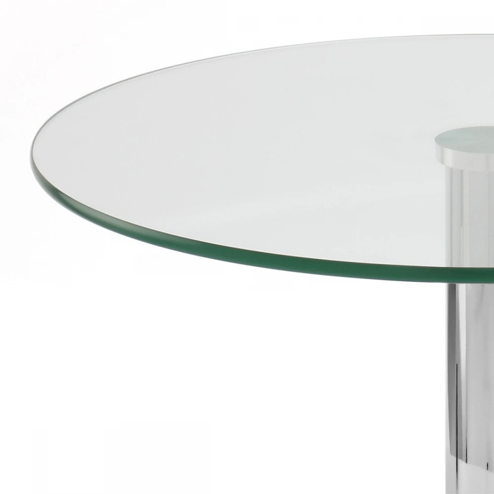 Der Couchtisch Glacier, mit seinem klassischen Design, ist perfekt für Ihr Wohnzimmer. Seine runde Oberfläche ist aus Glas und die Säule aus poliertem Chrom. Dieser Tisch ist leicht zu reinigen und besitzt eine lange Lebensdauer. Eine Gummileiste unter seiner Basis wird für den Schutz Ihres Fußbodens sorgen.