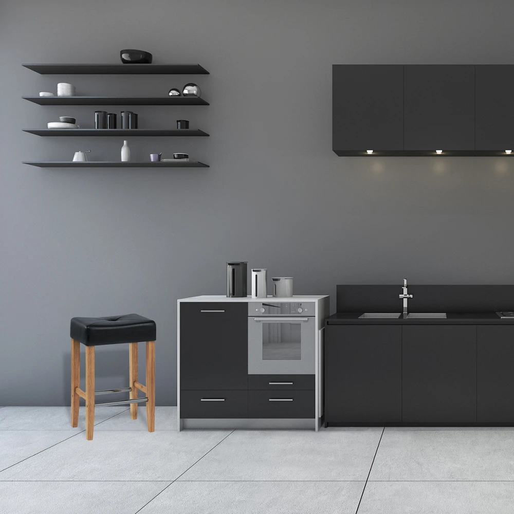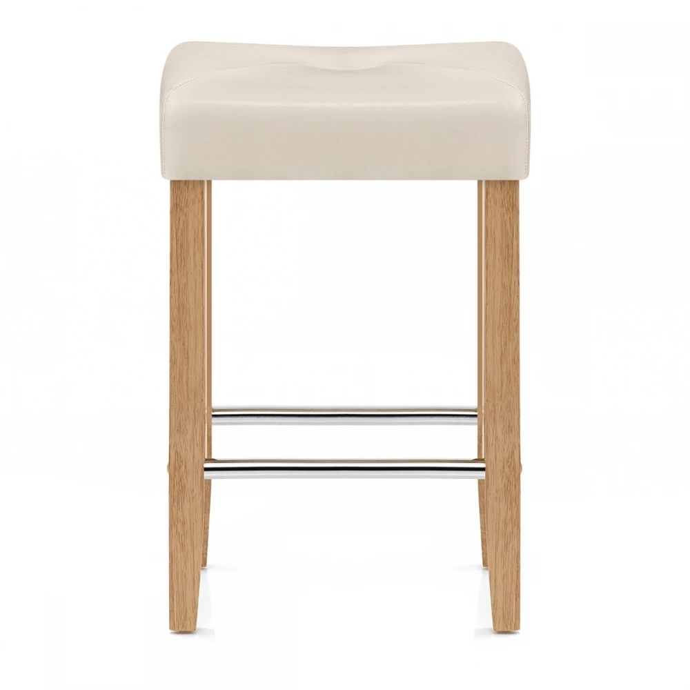 Der Otis Barhocker Eiche ist ein zeitloser vierbeiniger Barhocker mit einem modernen Touch. Der gepolstere Kunstledersitz sieht sehr modisch aus durch das schicke Kreuzdesign. Durch die kompakte, rückenlose Form kann der Hocker einfach verwahrt werden. Die Stabilität der handgefertigten Beine wird durch parallel verlaufende Chromstangen erhöht. Auf diesen Chromstangen können Sie ganz bequem Ihre Füße ablegen. Der vielseitig verwendbare Otis Barhocker verfügt über Bodenschutzkappen unter den Stuhlbeinen um Kratzer zu vermeiden.