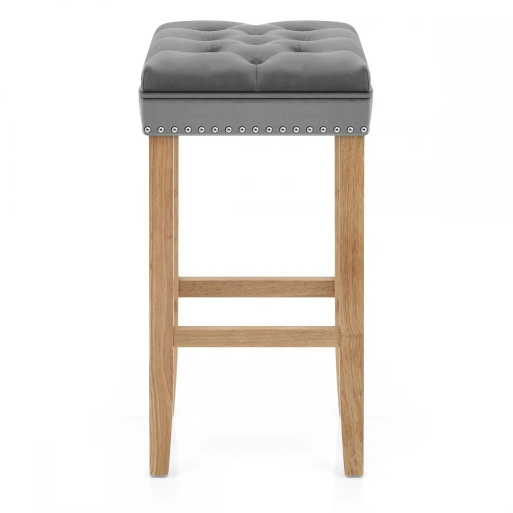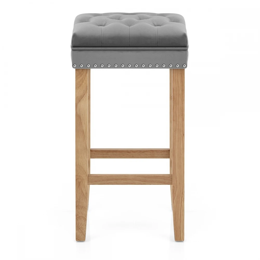 Mit seinem königlichen Stil, ist der Samtbarhocker Belgravia aus Eichen-Finish ein wunderbares Stück. Belgravia strahlt mit seinem schönen Samtbezug und der rückenlosen Verarbeitung Glamour aus. Für den luxuriösen Look sorgt der gepolsterte Sitz mit schick angebrachten Knöpfen am Rand. Der stabile Holzrahmen ist aus Eichen-Lack bestrichen und wird durch Zwischenstreben verbunden, die ebenfalls als Fußstütze dienen. Zusätzlich ist der Barhocker mit Bodenschutz ausgestattet. Belgravia passt sowohl in glamouröse als auch rustikale Ambiente.