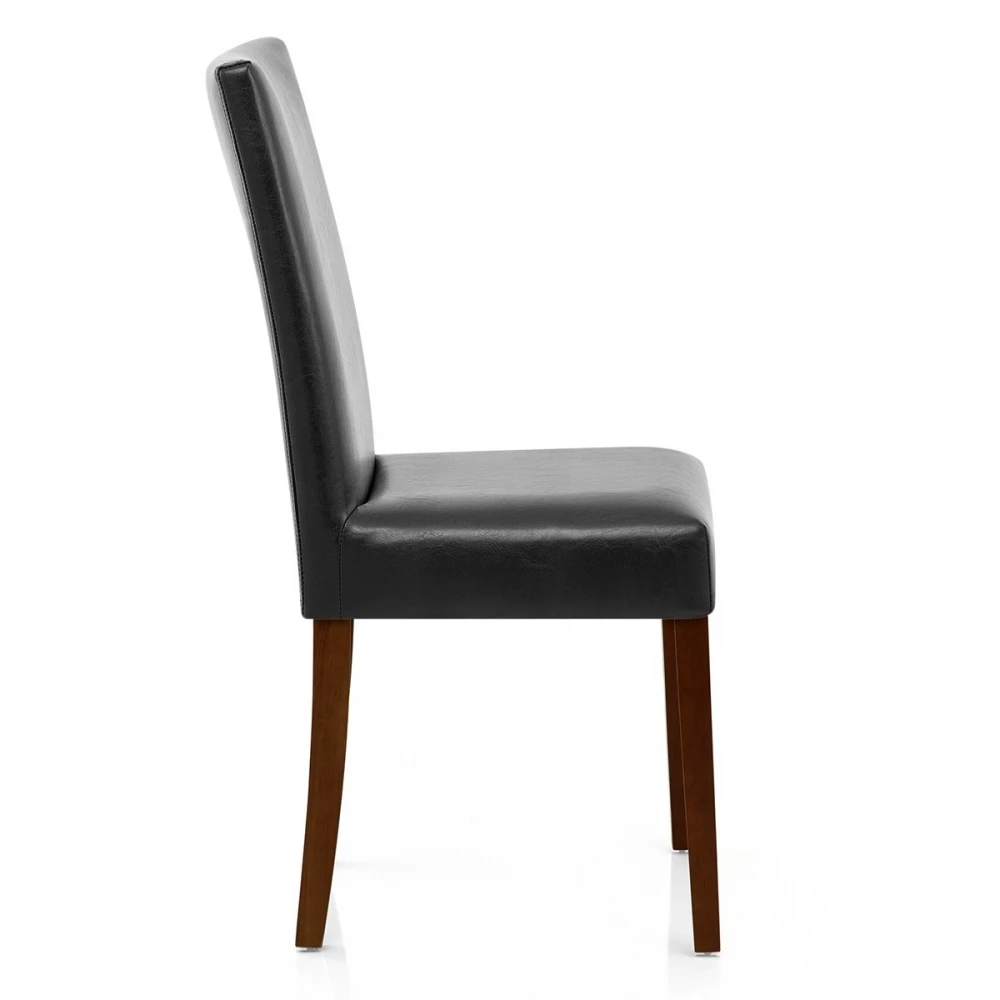 Der Stuhl Chicago Walnuss ist eine ideale Alternative für jede Art von Einrichtung. Er besitzt ein klassisches und schickes Design für ein einfaches und sorgfältiges möblieren. Er steht auf vier robusten Füßen aus dunkelem Walnuss Holz und hat einen Sitz aus Lederfaserstoff. Sein Sitz und seine Rückenlehne sind besonders komfortabel, denn Sie sind mit Schaumstoff hoher Dichte angenehm gepolstert. Beachten Sie auch, dass Gummischützer mitgeliefert werden, die Beschädigungen Ihres Fußbodens dauerhaft verhindern.