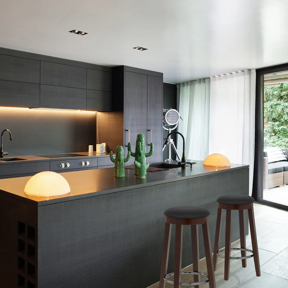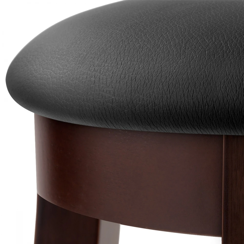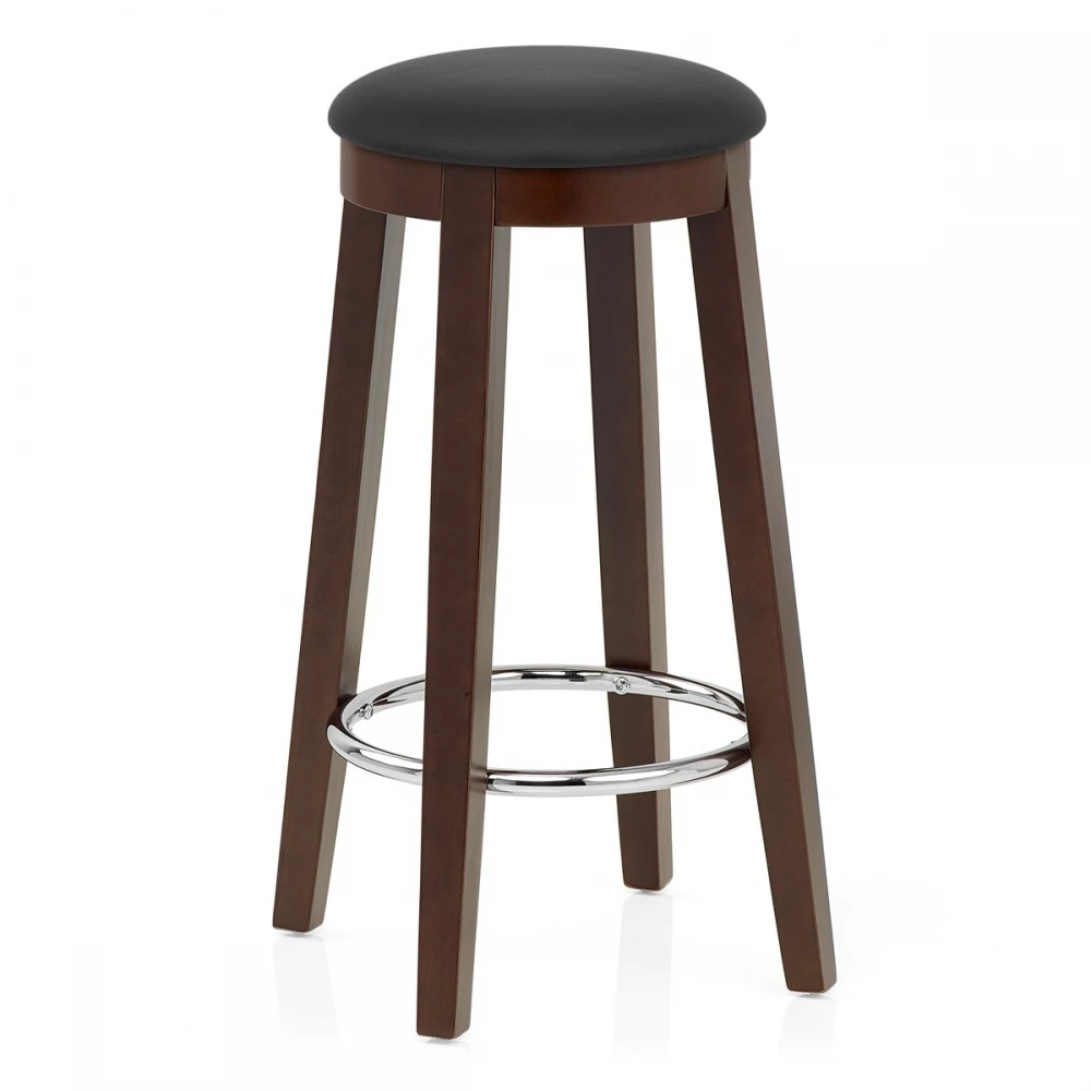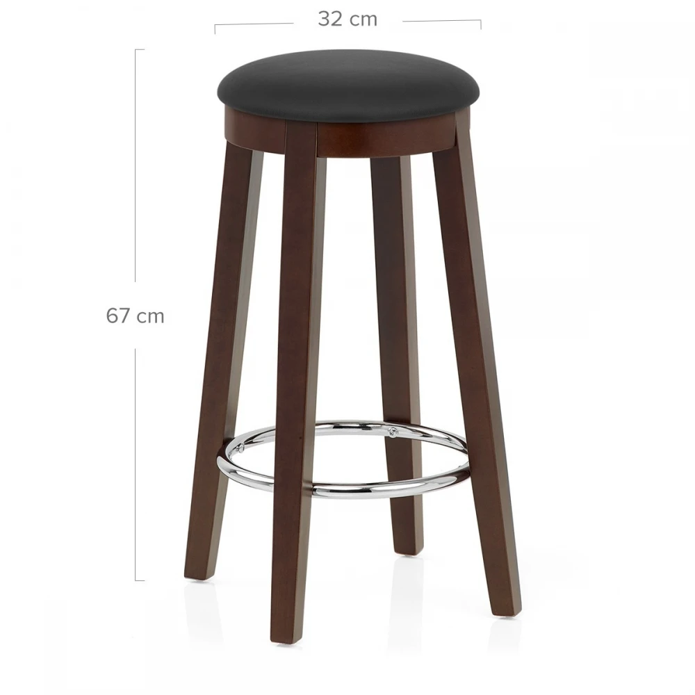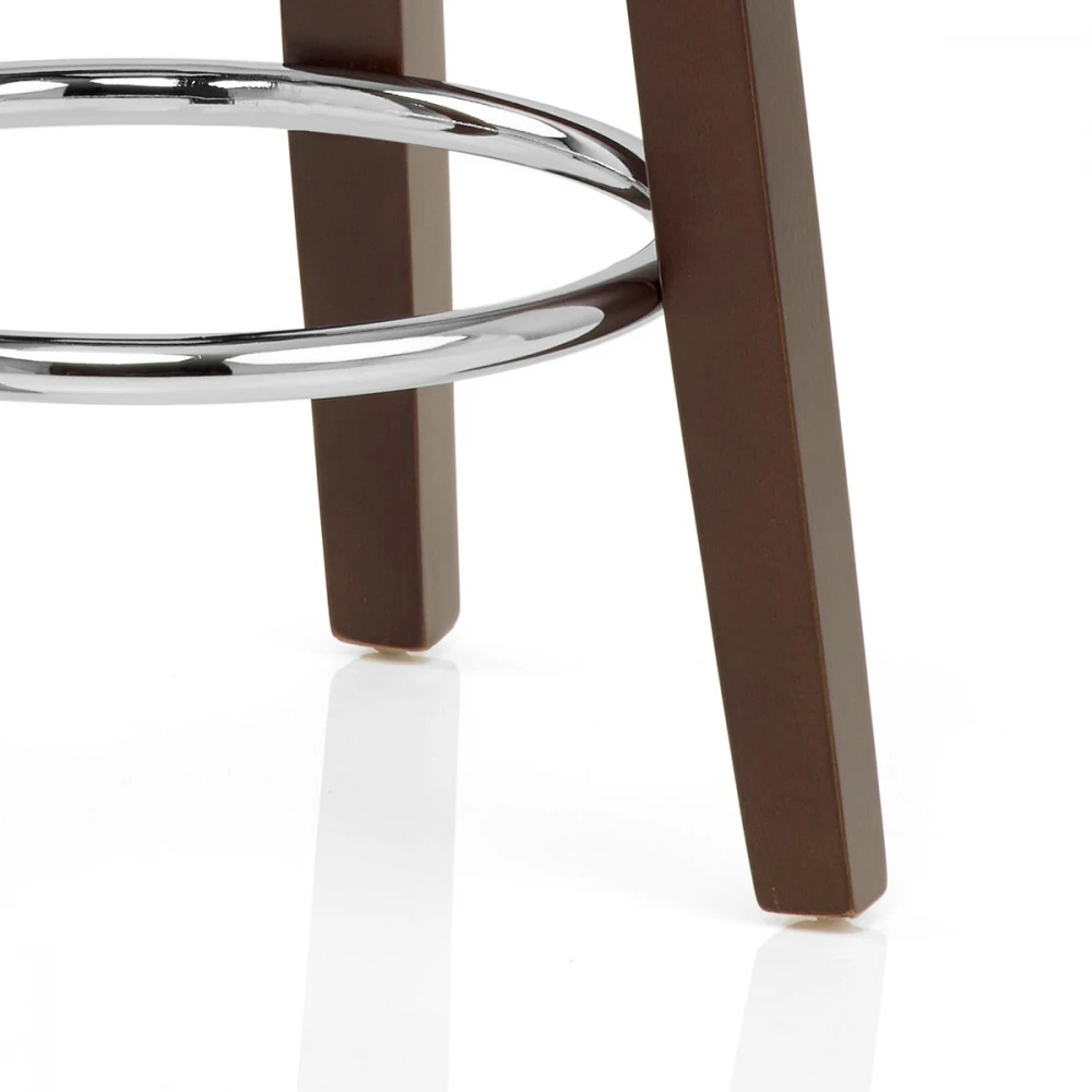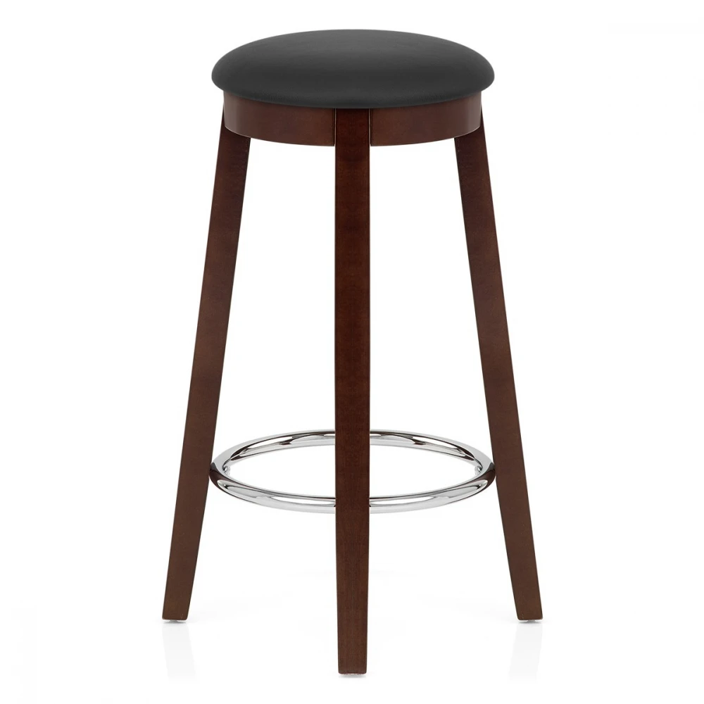 Der Küchenhocker Ikon ist vielfältig einsetzbar und wird überall positiv hervorstechen. Durch die praktische, kompakte Form ohne Rückenlehne kann der Hocker problemlos verstaut werden. Der Kunstledersitz ist bequem gepolstert und die Beine sind aus strapazierfähigem, stabilen Holz gefertigt mit einer wunderschönen Walnusslackierung. Der Ikon Küchenhocker verfügt auch über Bodenschutzkappen. Die kreisrunde Fußstütze mit glänzender Chromverspiegelung verleiht diesem klassischen Design ein modernes Make Over.