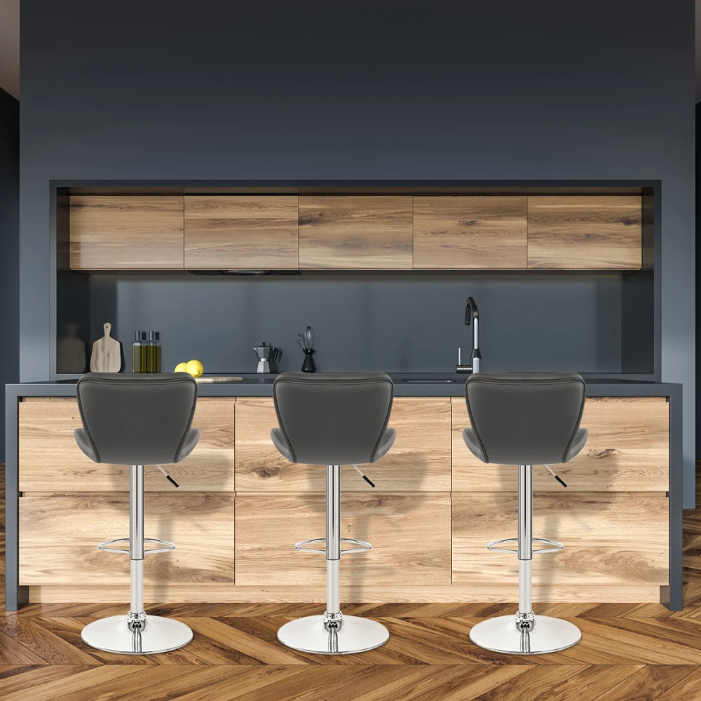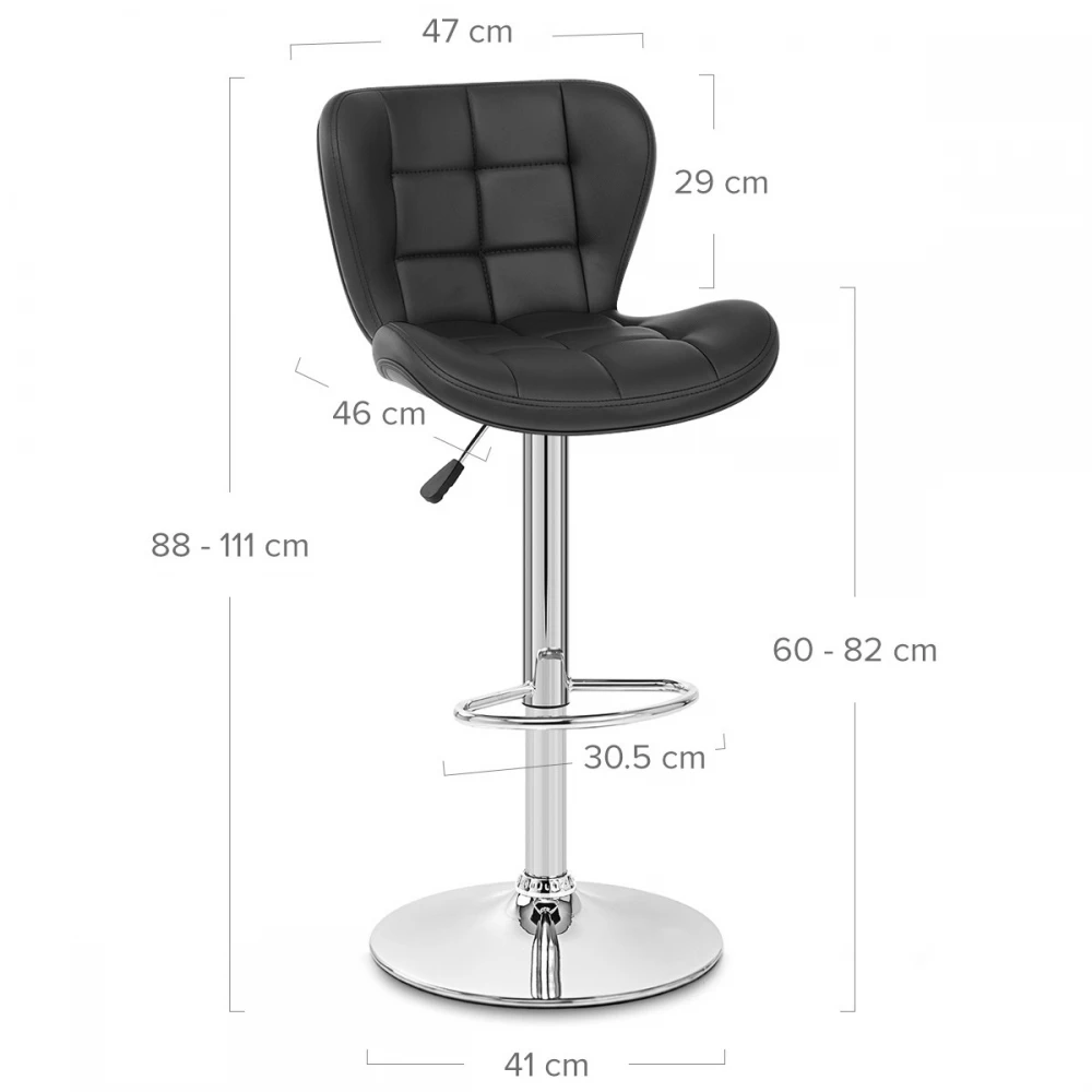 Mit zweireihiger Steppung, ergonomischem Sitz und der hohen anpassenden Rücklehne versprüht der Kunstleder-Barhocker-Houston moderne Eleganz. Um den Sitzkomfort noch zu unterstreichen, verfügt der Houston-Hocker über Winglets, die zusätzlichen Halt geben. Das Chrom-Untergestell ist mit einem Gasdruckzylinder versehen und lässt sich stufenlos in der Höhe verstellen. Außerdem ist er um 360° drehbar und mit einem Unterbodenschutz ausgestattet.