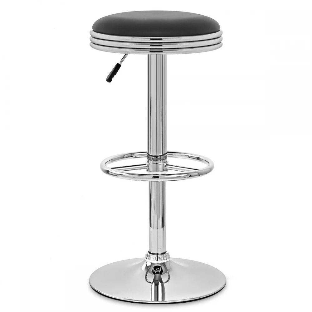 In nettem Retro-Look, bietet der Barhocker Java einen gepolsterten Sitz aus Kunstleder. Auf seinem Untergestell verfügt er über eine Fußstütze aus poliertem Chrom. Dank seinem Zylinder können Sie seine Höhe einstellen und sich um 360° drehen. Eine Leiste aus Gummi unter seinem Sockel wird für den Schutz Ihres Bodens sorgen.