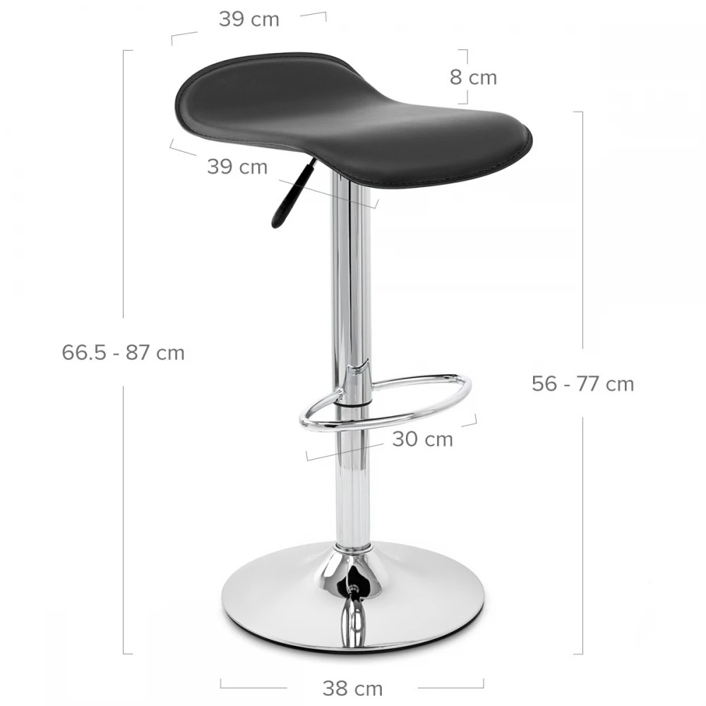 Das Glück zu einem kleinen Preis. Der Barhocker Zars bietet einen optimalen Komfort durch den wunderbaren, ergonomischen Sitz aus gepolstertem Kunstleder und einem Sockel aus Chrom mit Fußstütze. Dank der Gasdruckfeder können Sie die Höhe verstellen oder sich um 360° drehen. Auch an Ihren Boden wurde gedacht, da Gummileisten diesen vor Beschädigungen schützen.