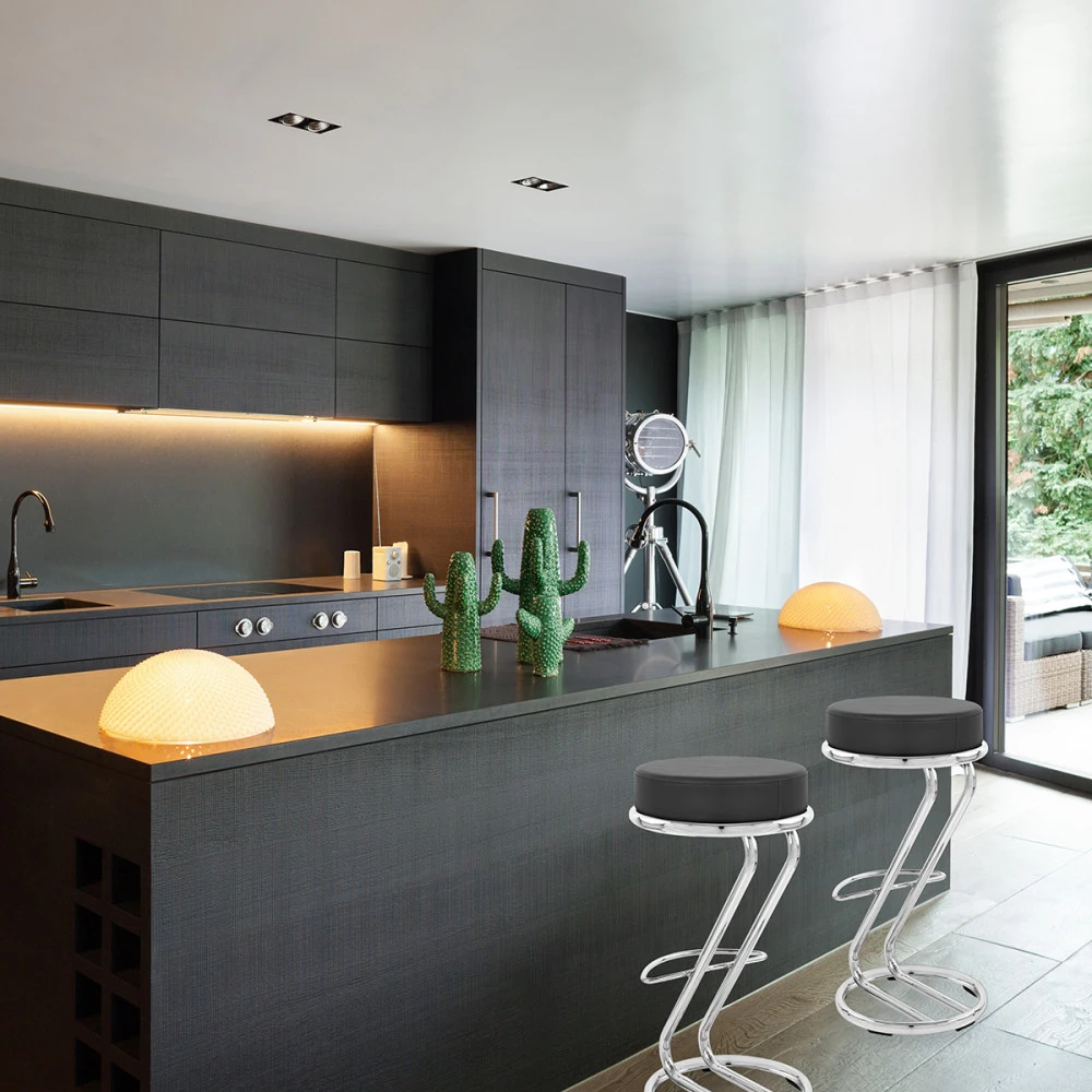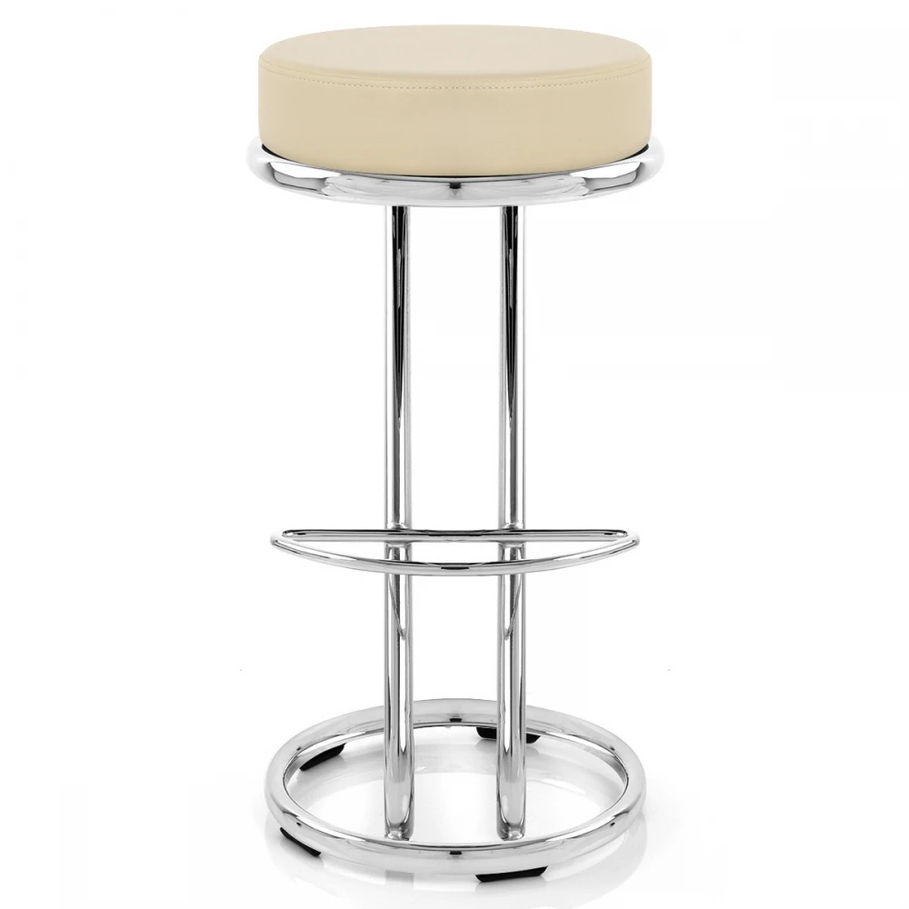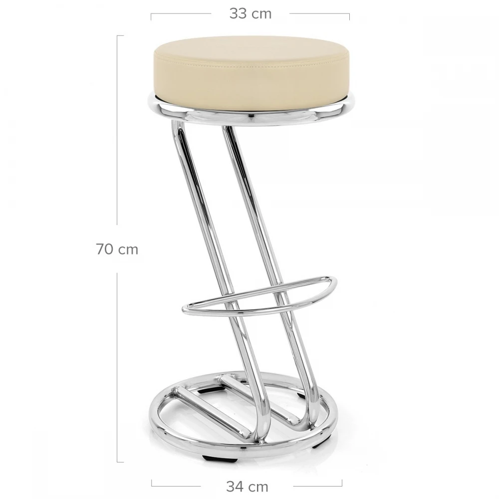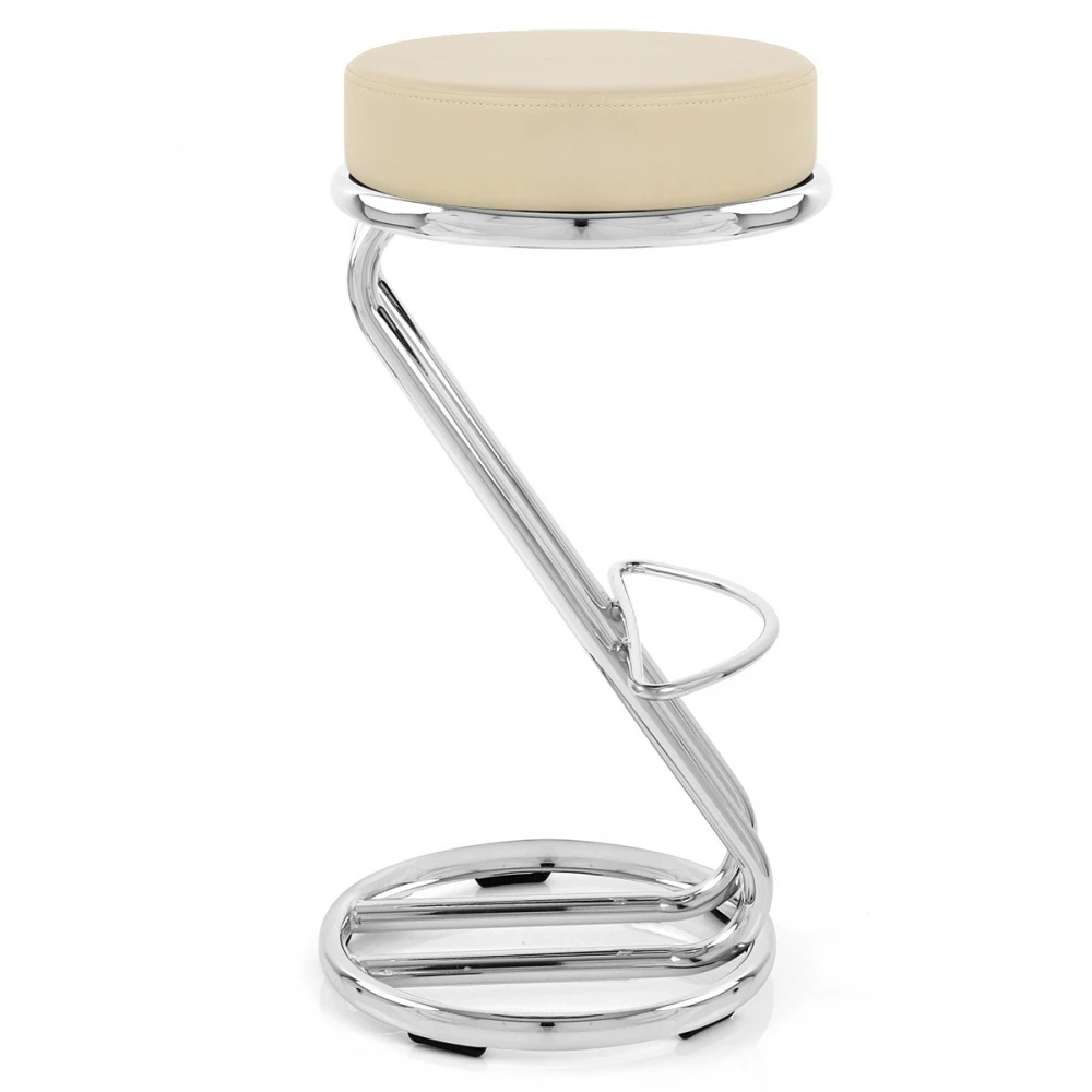 Zaza ist der Klassiker schlechthin. Diese Form hat wahrscheinlich jeder schon einmal gesehen. Sein dicker Sitz aus gepolstertem Kunstleder wird getragen von einem prächtigen, verchromten Z-Untergestell, das über eine Fußstütze verfügt. Sein Sockel ist rund und darunter befinden sich Gummipads, die Ihren Fußboden zu schützen.