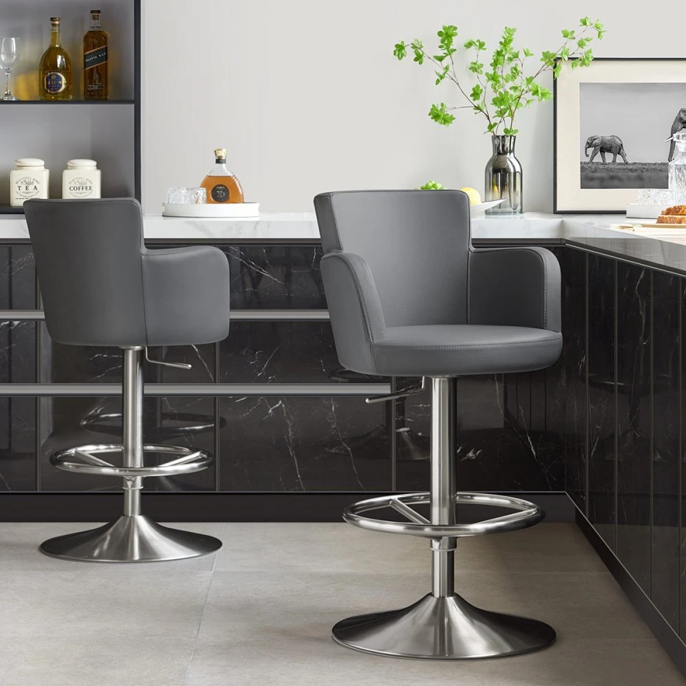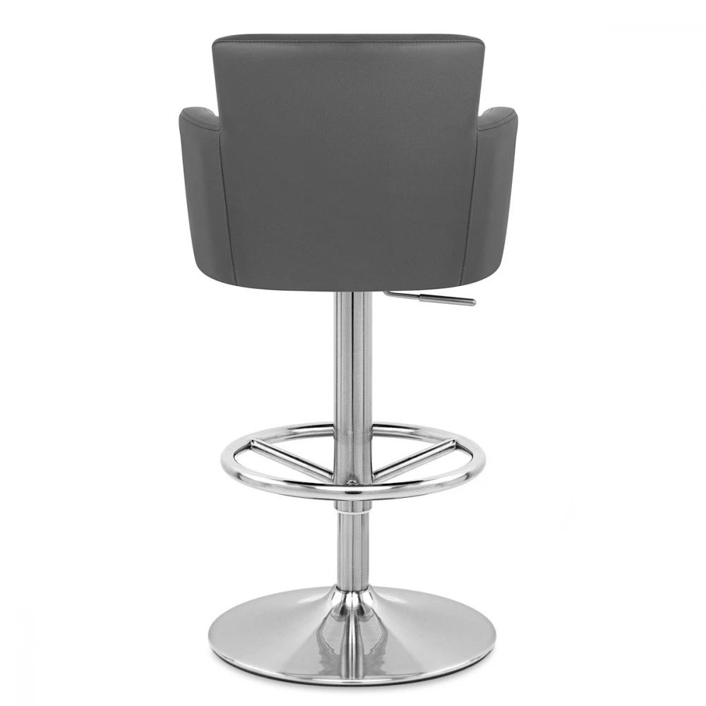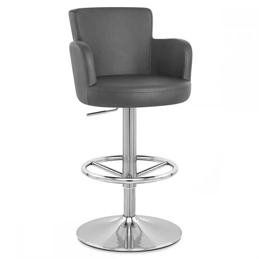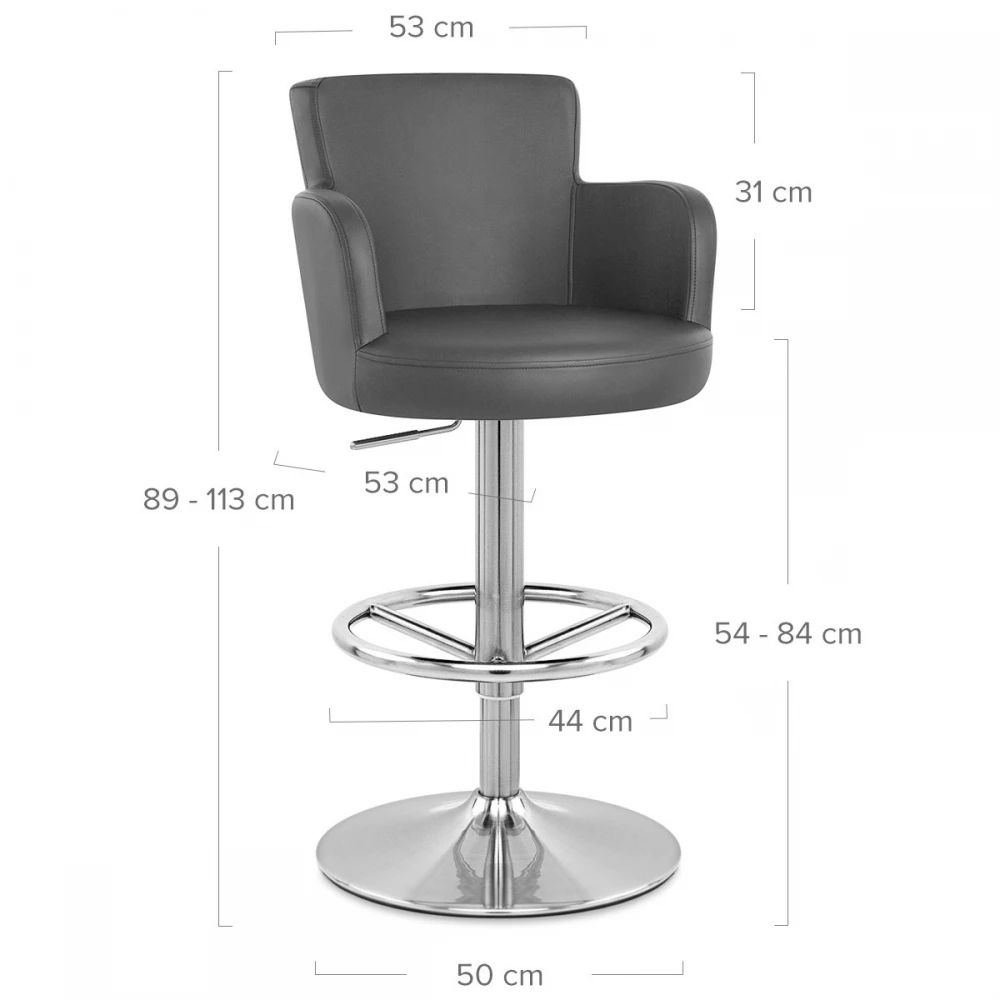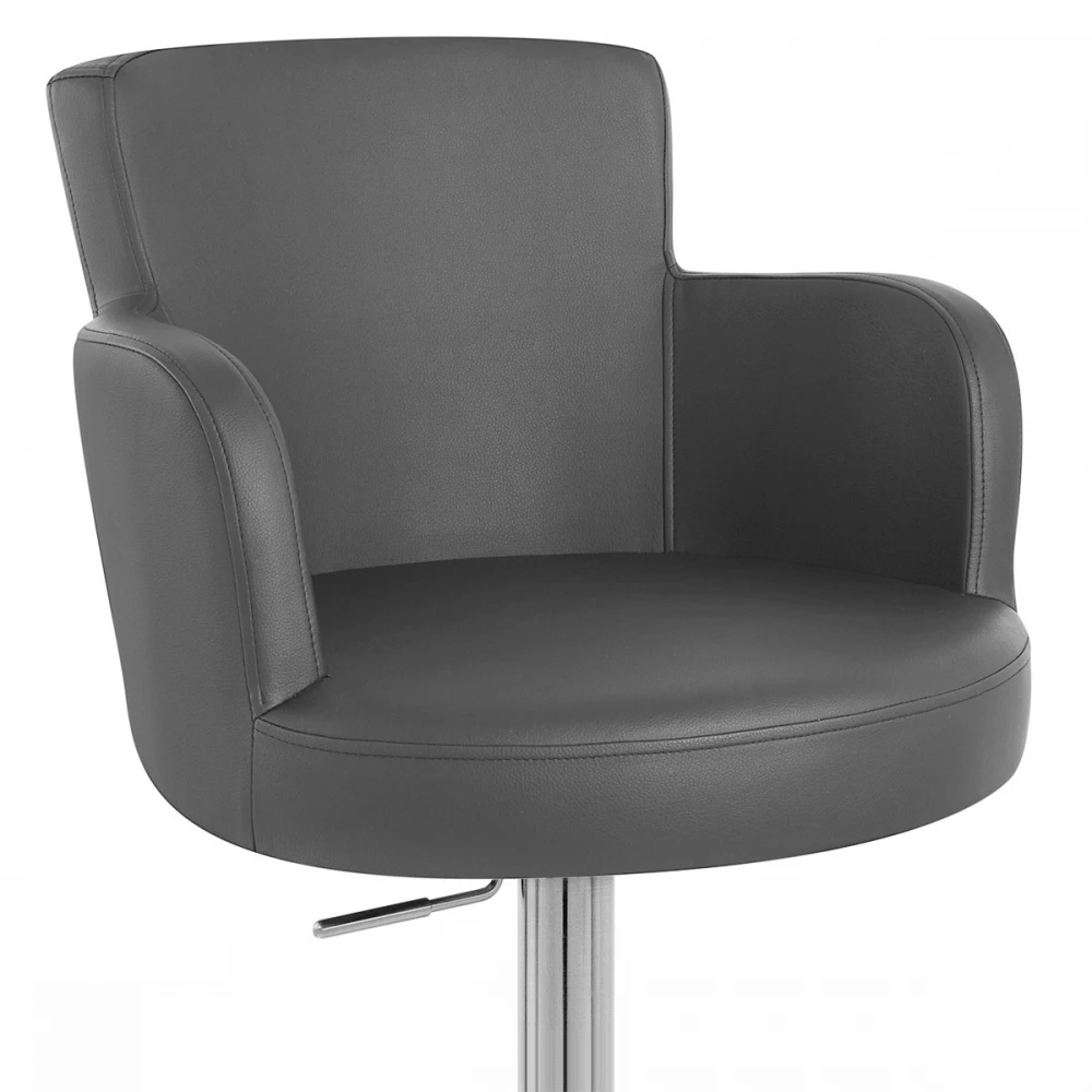 Der Barhocker „Chateau“, mit einem Untergestell aus gebürstetem Chrom, trägt seinen Namen zu Recht. Er ist nämlich ein Luxusstuhl, der gleichzeitig modern und traditionell verziert ist. Die Sitzfläche, die mit dichtem Schaumstoff gepolstert ist, ist mit Kunstleder überzogen. Die hohe Rückenlehne wird auf beiden Seiten durch gerundete Armlehnen verstärkt, die, zusammen mit der runden Fußstütze, eine sehr entspannende Wirkung erzielen. Dieser Stuhl ist höhenverstellbar und erlaubt eine Drehung um 360°. Gummischützer sorgen dafür, dass Ihr Boden nicht verkratzt wird.