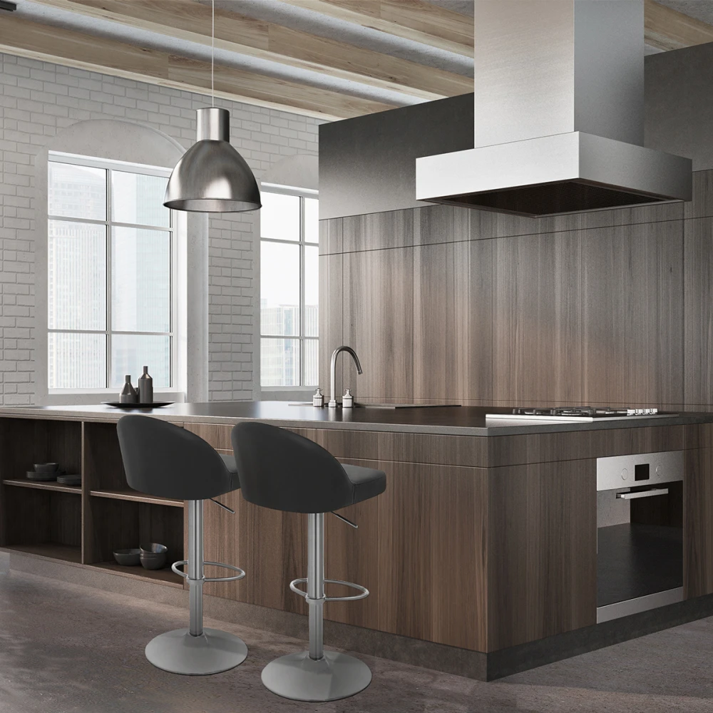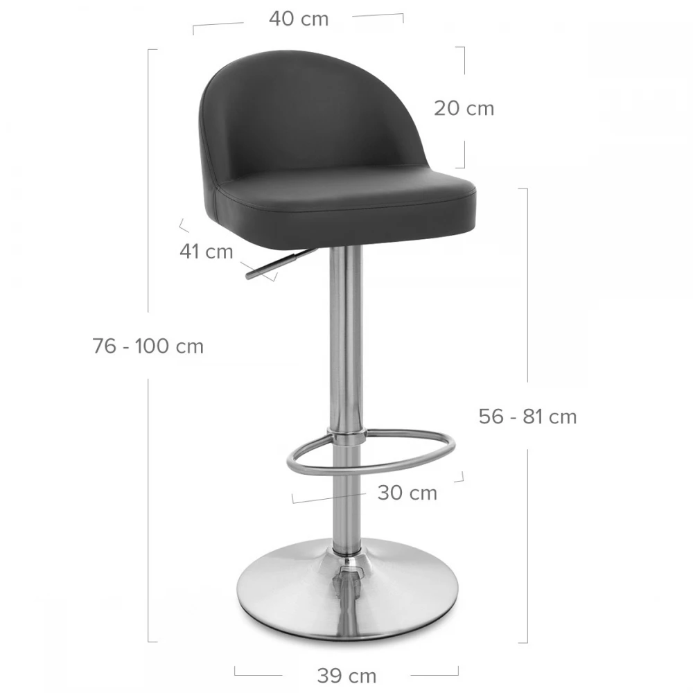 Bezaubernd und ohne Schnickschnack wird der Barhocker Mimi Gebürstet Sie mit seinem Charme überzeugen. Sein Sitz ist aus mit dichtem Schaumstoff gepolstertem Kunstleder und sehr komfortabel. Sein Untergestell mit Zylinder ist aus gebürstetem Stahl mit einem matten Finish, der besonders trendy ist. Dieser Barstuhl ist höhenverstellbar und kann um 360° gedreht werden, so dass man sich optimal bewegen kann. Zuletzt ist der Mimi mit einer Fußstütze versehen und Bodenschützern, die unter der runden Basis verborgen sind.