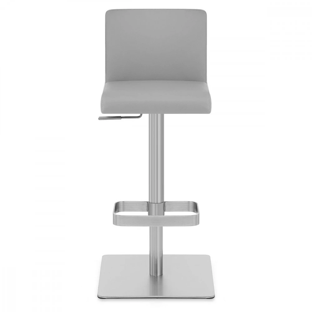 Die Regelmäßigkeit der Linien des Barhockers Newark macht aus ihm einen wertvollen Begleiter in luxuriösen Esszimmern. Geometrische Linien aus gebürstetem Chrom sorgen dafür das aus ihm ein elegantes und gleichzeitig schlichtes Modell wird. Eine Gasdruckfeder gewährleistet, dass Sie die Höhe stufenlos Ihrem Bar-Tisch oder Ihrer Arbeitsfläche anpassen können, so dass jedes Familienmitglied oder jeder Gast seinen Platz findet. Gummibänder unter dem Sockel des Newark-Modells sorgen dafür, dass Ihr Fußboden nicht verkratzt wird.