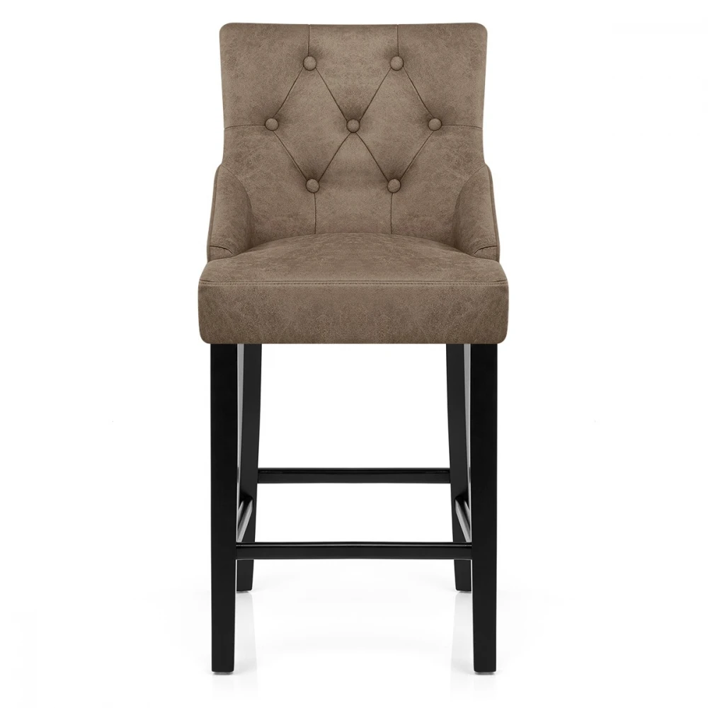 Ein fabelhaftes Design mit fixer Höhe, der Kunstlederbarhocker Loxley. Mit einem Mix aus elegant und modern bietet dieser Barhocker sesselartigen Komfort. Auf Küchenbarhöhe passt sich die hohe gepolsterte Rücklehne wunderbar Ihren Körper an und gibt auch Ihren Armen zusätzlichen Halt. Der Sessel ist auf einem soliden schwarzen Holzrahmen gefertigt, welcher zusätzlich Fussstützen zur Verfügung stellt. Stil wird natürlich auch nicht ausgelassen: entag der Naht werden dekorative Chromdetails verwendet und das Polster der Rückenlehne wird durch ein Knopfmuster verziert. Mit Bodenschützern ausgestattet, wird der Loxley Hocker Ihrem Zuhause den gewissen Charme verleihen.