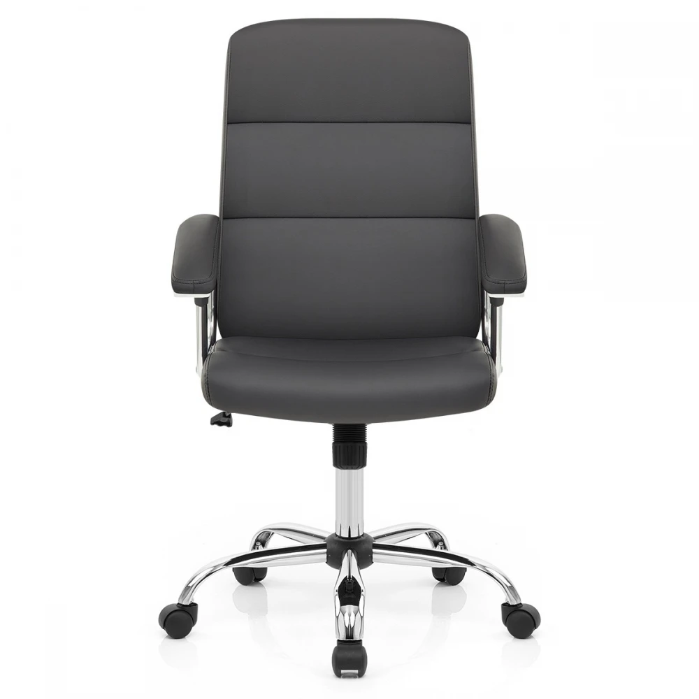 Der Bürostuhl Stanford ist sowohl praktisch als auch von exzellentem Design: Der Kunstledersitz ist gepolstert damit für Ihren optimalen Komfort gesorgt ist. Die hohe Rückenlehne ist in drei trendige Segmente unterteilt und die glänzenden Chrom-Armlehnen sind mit gepolstertem Kunstleder überzogen, so dass Sie Ihre Arme bequem beim Arbeiten ablegen können. Außerdem kann man die Armlehnen nach vorne klappen, so dass man den Bürostuhl ganz einfach unter einen Tisch schieben kann. Der Sitz des Bürostuhl Stanford ruht auf einem glänzenden Chromrahmen mit 5 Rädern, so dass Sie den Stuhl flexibel hin- und her bewegen können. Der Bürostuhl Stanford verfügt über eine Gasdruckfeder für flexible Höhenverstellung, einen 360 Grad Drehmechanismus und einen verstellbaren Kippwinkel, damit Sie Ihre individuelle Sitzposition einstellen können.