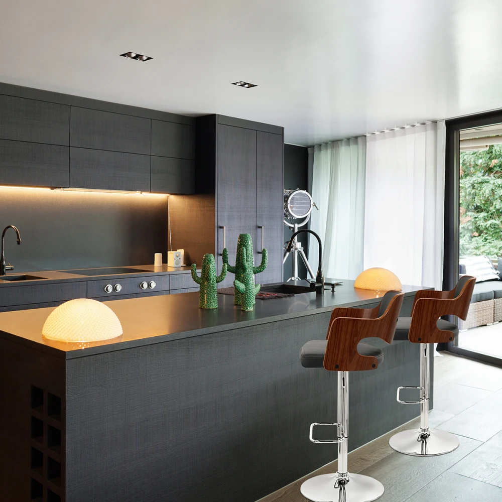 Verleihen Sie Ihrer Küche eine Prise Retro mit dem Barhocker Amazon aus Walnuss. Die erhöhte Rückenlehne und geschmeidigen Armlehnen sorgen für einen hohen Komfort. Er ist gepolstert und mit prächtigem Kunstleder überzogen, was ihn sehr ansprechend macht. Mit einem Fuß aus poliertem Chrom und dem runden Sockel, welcher über ein rutschfestes Band verfügt, zeigt sich der Amazon durchaus modern!