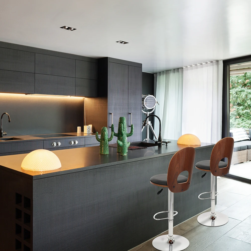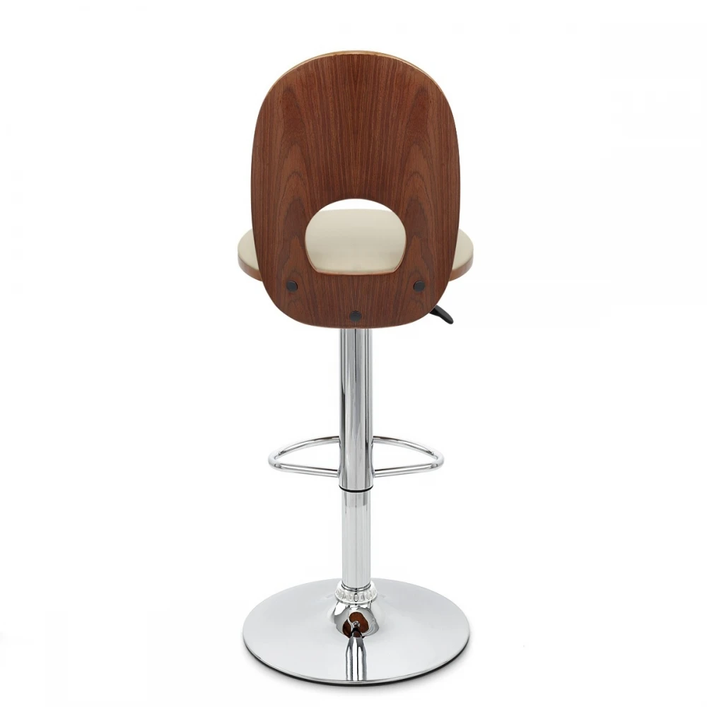 Mit seinem originellen Aussehen passt der Barhocker Bolero in viele verschiedene Umgebungen. Seine Sitzfläche aus Holz ist angenehm mit einer dicken Schicht aus Schaumstoff gepolstert in einer Hülle aus schönem Kunstleder. Sie können ihn nach Belieben in der Höhe verstellen, um 360° drehen, und seine gerundeten hohe Rückenlehne und Fußstütze machen ihn sehr entspannend. Ihr Boden wird durch Antirutschbänder geschützt.