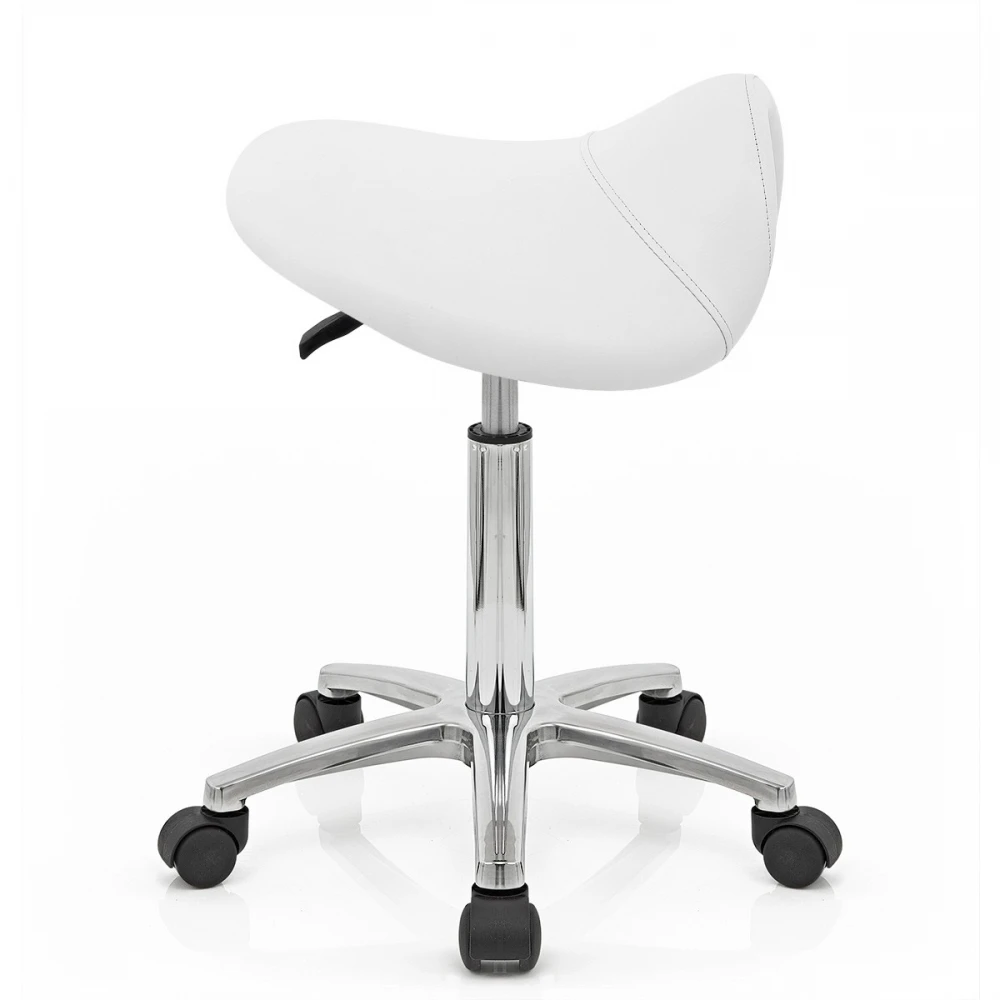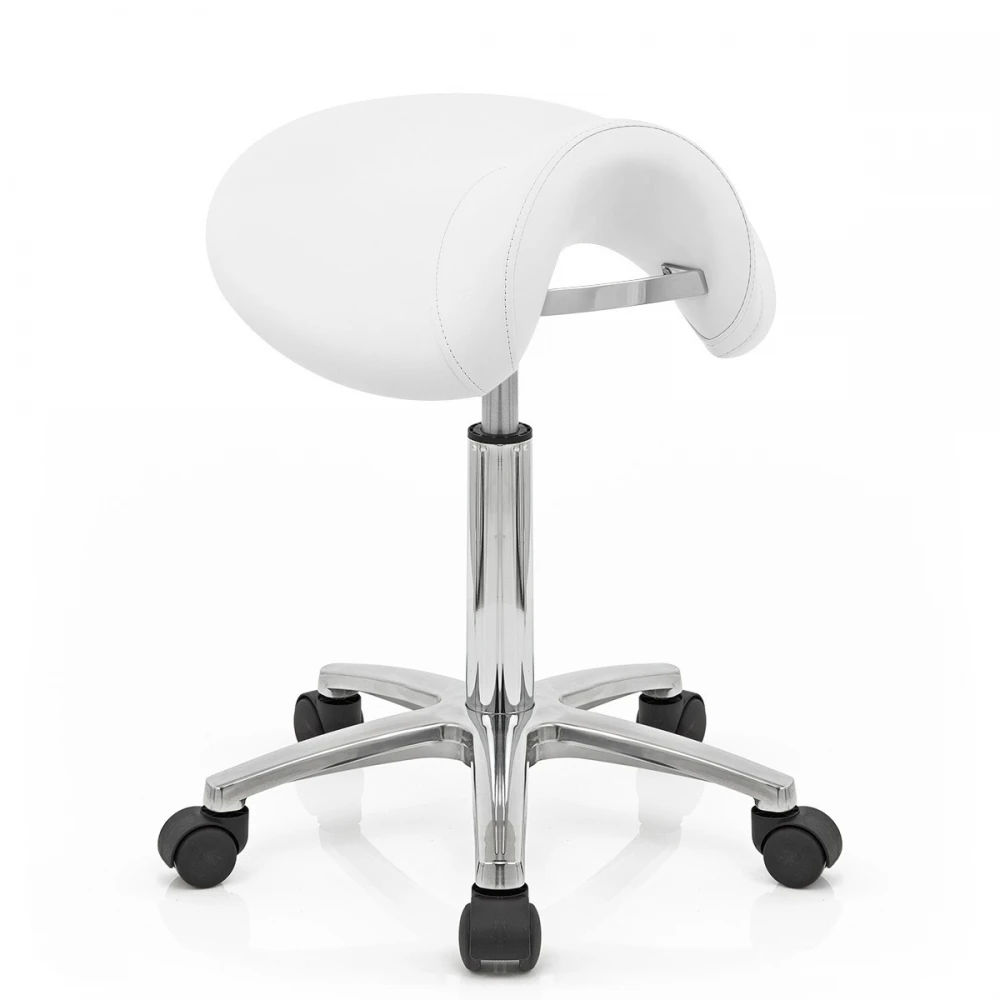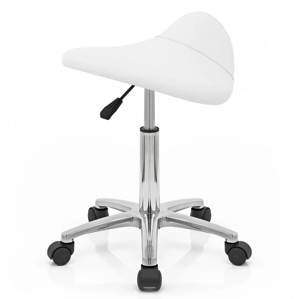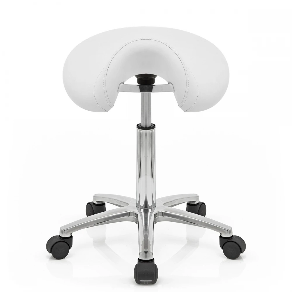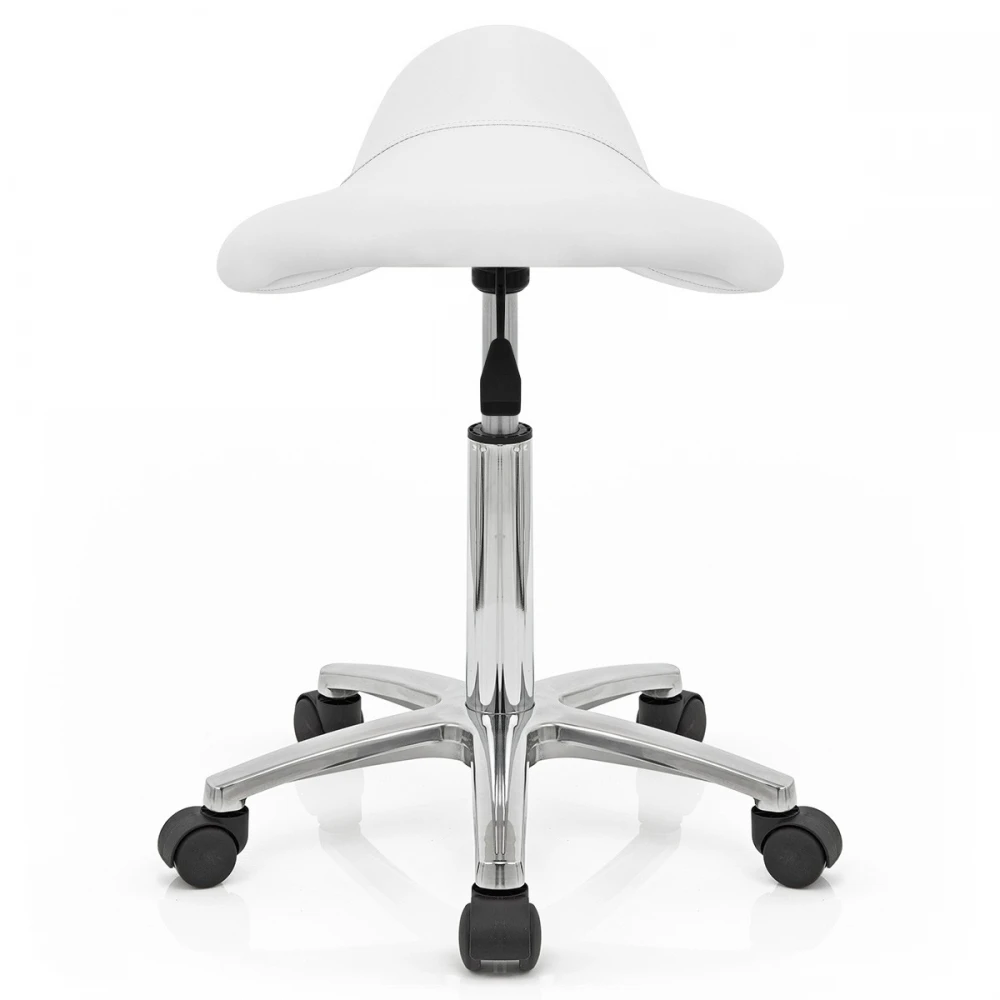 Der Deluxe Saddle hebt sich durch sein einzigartiges Design von anderen Barhockern ab. Er ist äußerst komfortabel, dank der Form des Kunstledersitzes, der sich sehr gut an Ihren Körper anpasst. Er bietet, aufgrund der fünf Rollen aus Nylon, ebenfalls eine sehr große Mobilität und eine Gasdruckfeder ermöglicht seine stufenlose Höhenverstellung.