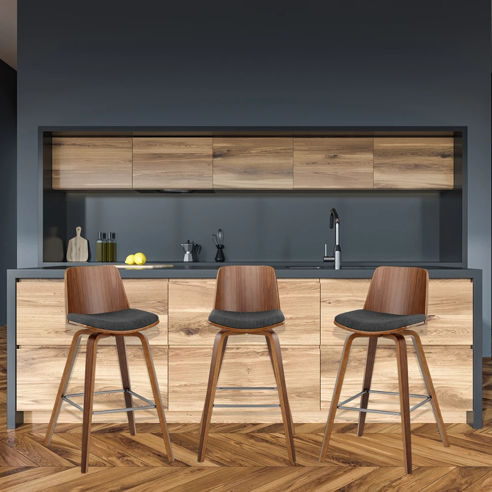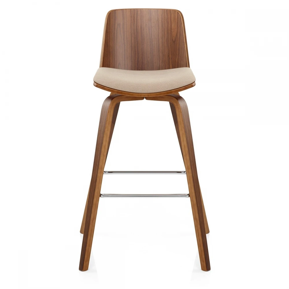 Traditionelles Design und doch schick und modern, das beschreibt den Barhocker Mirage. Seine Rückenlehne aus Wallnussholzfinish und sein gut gepolsterter Sitz mit Stoffbezug bieten Ihnen Halt und Komfort. Sein Gestell besteht aus vier soliden Beinen und einer viereckigen Fußstütze aus Chrom.