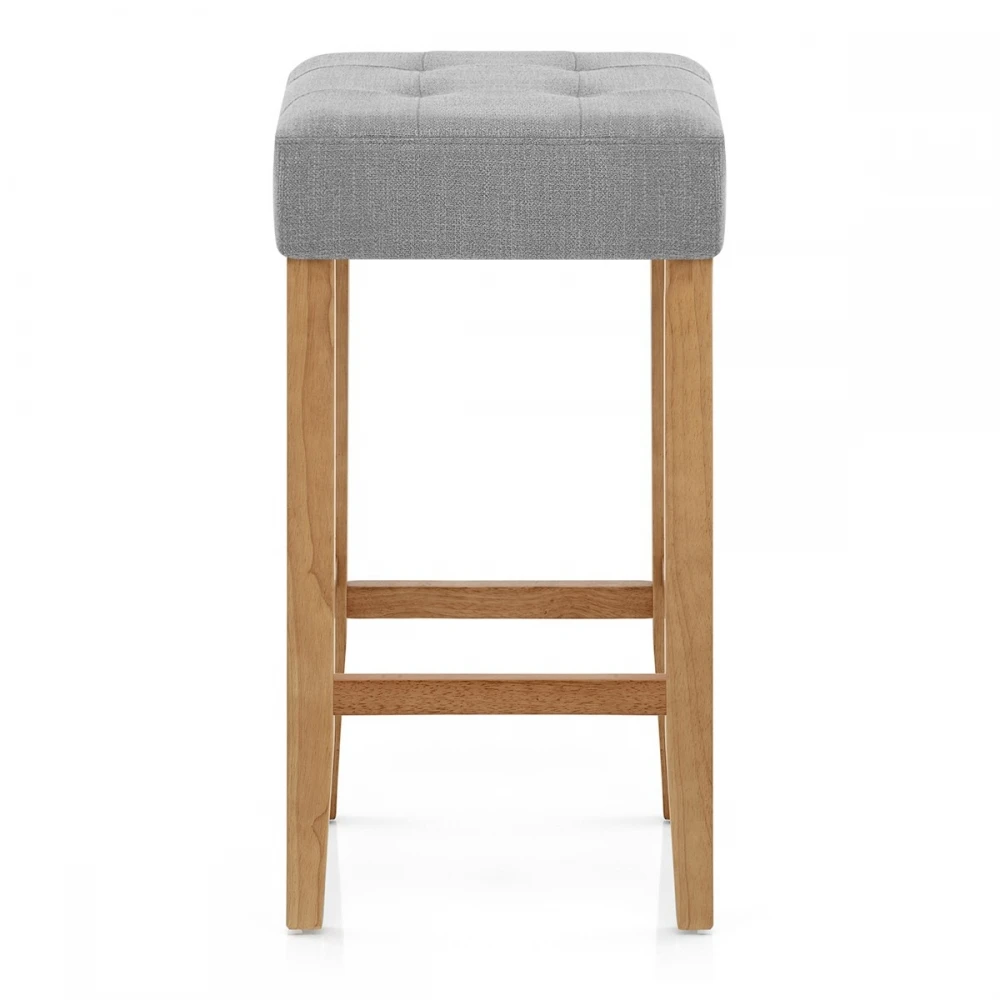 Klassisch und kompakt ist der Stoffbarhocker Eiche Oliver die perfekte Ergänzung mit traditional rustikalem und modernem Flair. Die großzügige, gepolsterte Sitzfläche ist mit bequemem Stoff überzogen, betont durch Stickraster – Details, und verleiht ein weiches und wohnliches Gefühl. Der solide Holzrahmen mit Eichen-Finish trägt das Gewicht sicher und stabil und ist zusätzlich mit Bodenschutz ausgestattet. Verstärkt wird dies durch Zwischenstreben, welche ebenfalls als Fußablage dienen – ein perfekter Barhocker für jede Küchentheke.