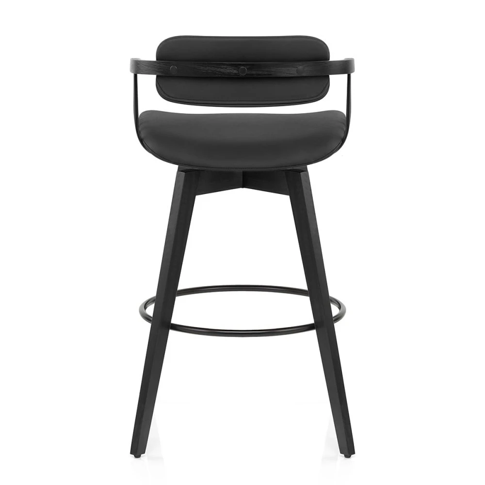 Der Electra Echtlederhocker bietet Komfort und Vielseitigkeit und steht stolz auf Höhe der Küchentheke, um Sie in modernem Luxus zu empfangen. Der Sitz ist so geformt, dass er an einen Sessel erinnert, aber mit einem modernen, ansprechenden Flair. Er besteht aus einem dicken Sitzpolster, das mit fünf Metallstreben auf beiden Seiten verbunden ist, die die Rückenlehne und die Armlehnen aus Bugholz in Form einer Eklipse anheben. Die Polsterung im hinteren Bereich sorgt für zusätzlichen Komfort. Die Sitzfläche ist mit echtem Leder bezogen. Vier rechteckige Beine, die auf Höhe der Küchentheke befestigt sind, verjüngen sich nach unten hin stilvoll. Sie sind wie die Rückenlehne aus dunklem Bugholz gefertigt und vereinen die verschiedenen, hochwertigen Texturen miteinander. Eine Drehplatte, die eine 360-Grad-Drehung ermöglicht, und eine runde Metallfußstütze im Inneren der Beine erleichtern das Absteigen. Jedes Bein ist mit verstellbaren Bodendübeln ausgestattet, um Kratzer zu vermeiden und Bodenunebenheiten auszugleichen.