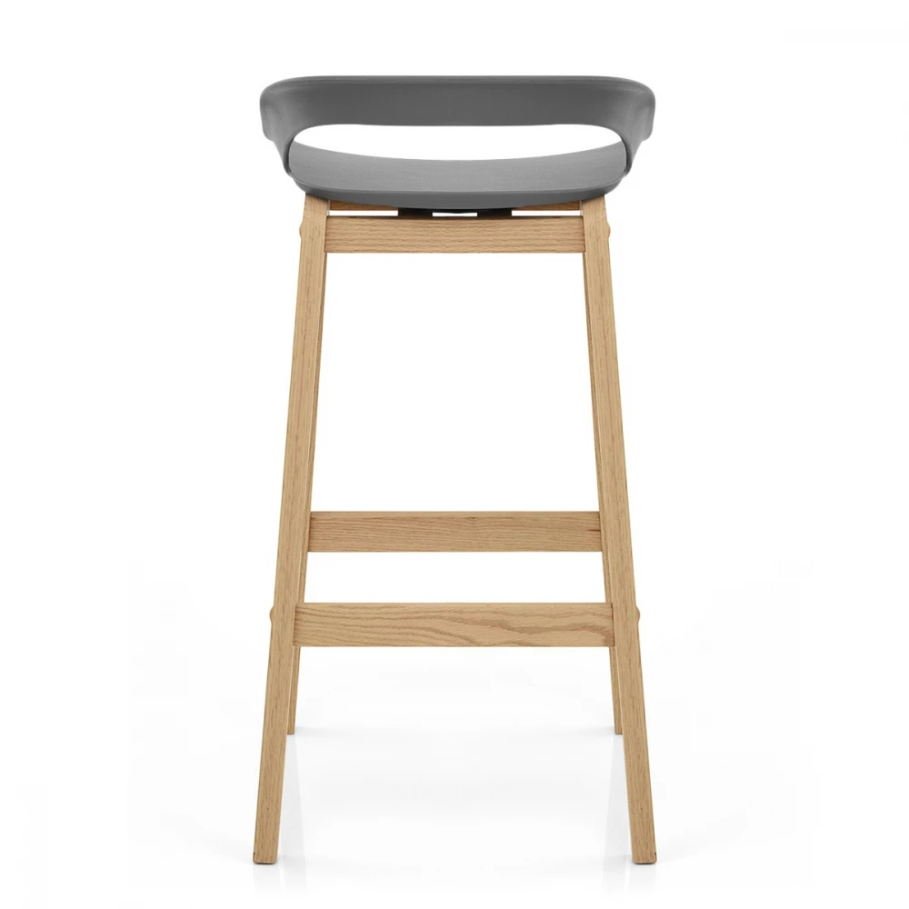 Der Barhocker Crew ist durch sein schlichtes Design und dem Retro-Stil, der ideale Begleiter für rustikale und moderne Küchenbars. Der Sitz aus mattem Kunstharz ist optisch platzsparend und hat ein ausgeschnittenes Design. Dies könnte auch als Griff verwendet werden und trägt zur außergewöhnlichen Ausstrahlung dieses Hockers bei. Im Gegensatz zum Sitz hat der Massivholzrahmen ein helles Eichenfinish und ist mit Stützstreben ausgestattet, die Stärke und eine praktische Fußstütze bieten. Jedes Bein hat einen Bodengummis um für zusätzlichen Schutz zusorgen.