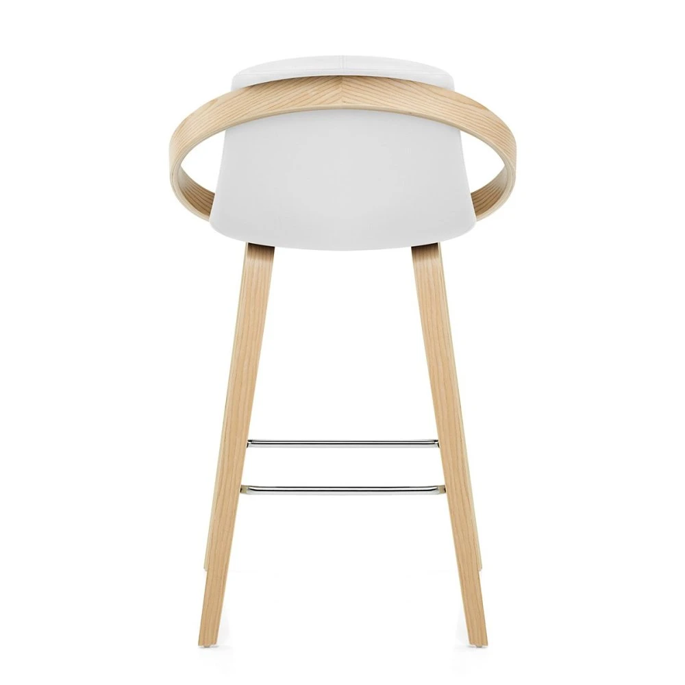 Der Atom Barhocker ist nicht nur ein stilvolles Möbelstück, sondern auch eine praktische und ästhetisch ansprechende Ergänzung für Ihre Küchentheke oder Bar. Mit seinem modernen Design und hochwertigen Materialien wird dieser Hocker sicherlich die Aufmerksamkeit Ihrer Gäste auf sich ziehen. Das markante Design vereint verschiedene Elemente zu einem harmonischen Ganzen. Die Sitzfläche aus Kunstleder ist nicht nur äußerst bequem, sondern auch elegant gestaltet, mit einer nahtlosen Verbindung zur mittelhohen Rückenlehne für zusätzlichen Komfort und Halt. Die Sitzfläche ist großzügig gepolstert und verfügt über eine vertikale Naht, die nicht nur das Design betont, sondern auch den Sitzkomfort erhöht. Mit seiner soliden Bugholzschale hat der Hocker eine gute Basis, die dank der natürlichen Holzmaserung nahtlos zu verschiedenen Einrichtungsstilen passt. Die kräftigen Bugholzbeine mit Eichenholz-Finish sorgen für Stabilität und Haltbarkeit. Jedes Bein ist mit einem Bodenschutz ausgestattet, um Ihre Böden vor Kratzern und Beschädigungen zu schützen. Zusätzlich verfügt der Atom Stool Oak über eine Metallverstrebung, die jedes Bein verstärkt und gleichzeitig als Fußstütze dient, um maximalen Komfort zu gewährleisten.