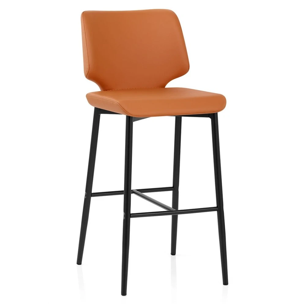 Mit seinen einfachen, aber formschönen Linien ist der Elan Barhocker eine unaufdringliche Ergänzung für Ihren Barbereich. Dieser Hocker, der die perfekte Höhe für Standard-Kücheninseln hat, ist das Update, nach dem Sie schon lange gesucht haben. Die Konturen, die an eine klassische Sanduhr erinnern, passen zu fast jedem Einrichtungsstil. Die hohe Rückenlehne und der Sitz sind mit einem hochwertigen Kunstleder überzogen und werden von einer horizontalen Naht gesäumt. Der ergonomisch geformte Sitzhocker wird von einem schwarz satinierten Metallgestell getragen. Der optisch schlichte, aber dennoch starke und robuste Rahmen besteht aus 4 rohrförmigen Beinen und einer H-förmigen Verstrebung, die als Fußstütze dient. Schutzstopfen an der Unterseite der Füße schonen Ihren Fußboden.