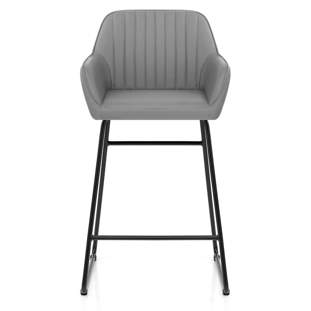 Tauchen Sie ein in die nostalgische Eleganz des Gabrielle Barhockers, der die perfekte Ergänzung für jede Küchentheke ist, die nach Charakter und Stil verlangt. Mit einer authentischen Retro-Ästhetik und viel Liebe zum Detail gefertigt, vereint dieser Hocker Komfort und Ästhetik auf harmonische Weise. Der Gabrielle Barhocker ist mit antikem Kunstleder bezogen, das ihm ein einzigartiges und charmantes Aussehen verleiht. Sein schicke Bezug und die markante, rautenförmige Rückenlehne ziehen sofort die Aufmerksamkeit auf sich und verleihen Ihrer Küche eine unvergleichliche Vintage-Atmosphäre. Der Hocker bietet nicht nur eine ansprechende Optik, sondern auch außergewöhnlichen Komfort. Die Rückenlehne geht nahtlos in bequeme Armlehnen über, während das großzügig gepolsterte Sitzkissen für entspanntes Sitzen sorgt. Das stabile fußbodenschonende Fundament des Hockers wird von zwei trapezförmigen Metallstreben gebildet, wodurch Stabilität und Langlebigkeit gewährleistet sind. Mit dem Gabrielle Barhocker können Sie einen Hauch von Nostalgie und Stil in Ihre Küche bringen und gleichzeitig einen komfortablen und einladenden Sitzbereich für Familie und Gäste schaffen.