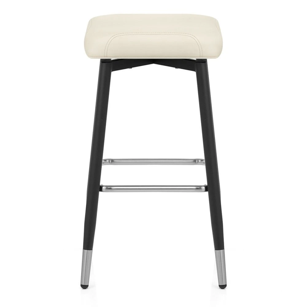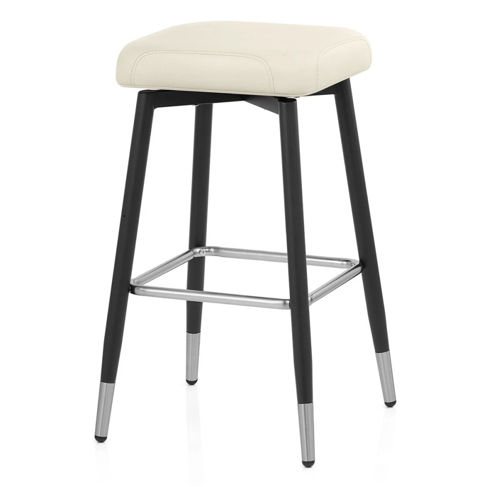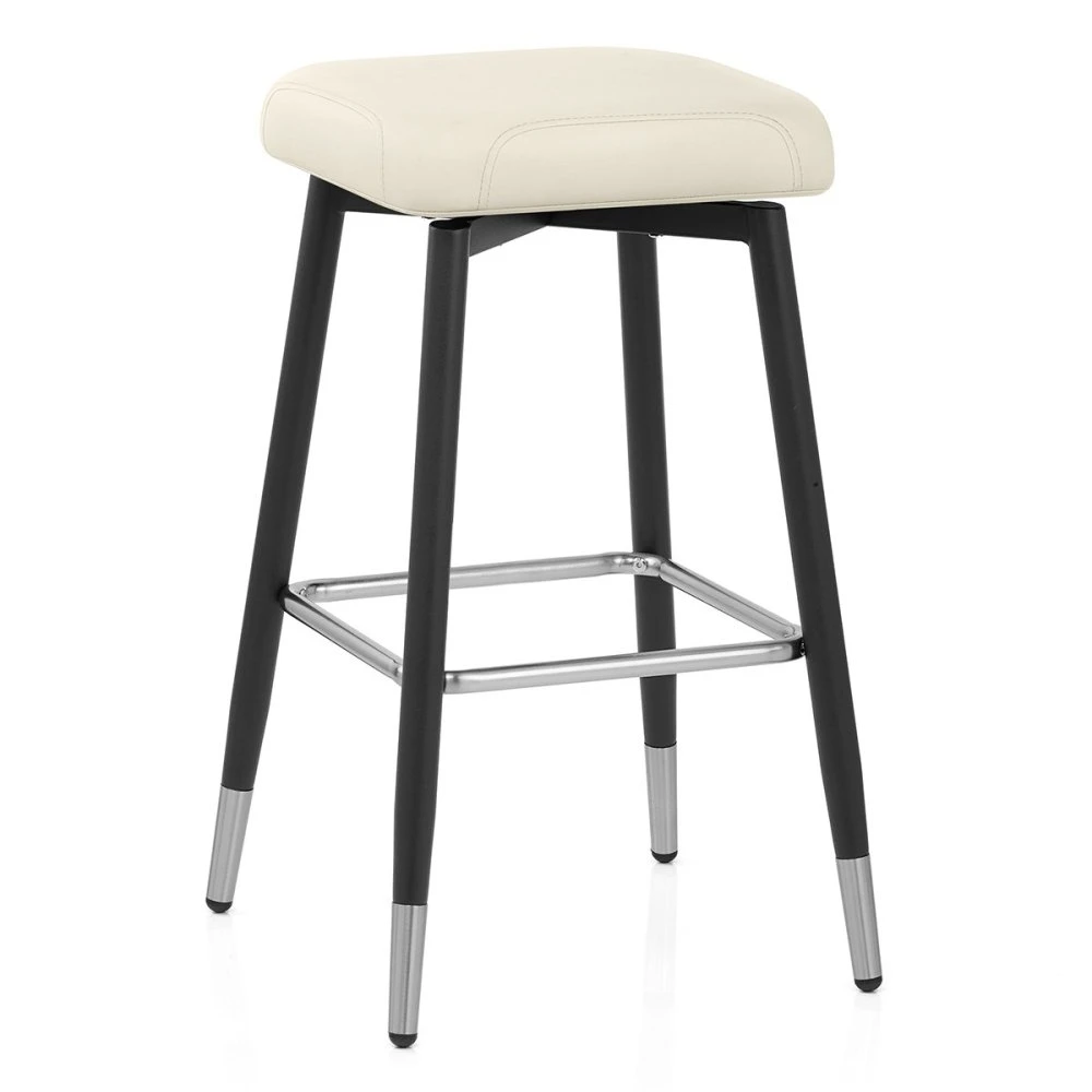 Mit seinem modernen Stil und seinem einzigartigen Aussehen ist der Luca Barhocker eine bequeme, aber kompakte Ergänzung für Ihren Barbereich. Das praktische, platzsparende Hocker Design geht keine Kompromisse beim Luxus ein. Im Gegenteil – die quadratische Form und das rückenfreie, mit Kunstleder bezogene Sitzpolster verleihen dem Tresenhocker eine schier zeitlose Ästhetik. Die luxuriös gepolsterte Sitzfläche ist um 360 Grad drehbar und verfügt über eine einzigartige Nahtverzierung auf jeder Seite. So entsteht ein schönes Muster, das sich perfekt in das einfache, aber stilvolle Design einfügt. Die Fußstütze und Füße aus gebürstetem Stahl heben sich deutlich vom Glanz des schwarzen Metallgestells ab. Die vier Beine verjüngen sich bis zum Boden, wo sie mit Schutzkappen versehen sind, um Ihre Böden nicht zu zerkratzen. Die ideale Sitzgelegenheit für Standard-Küchentheken und Bars.