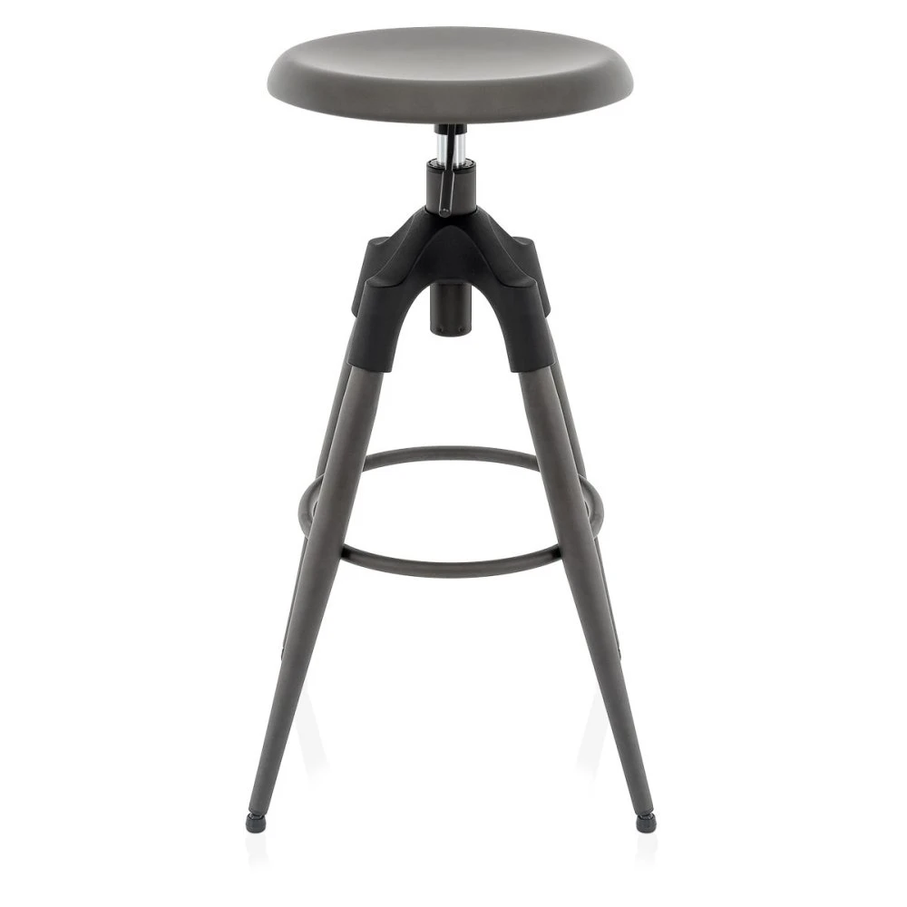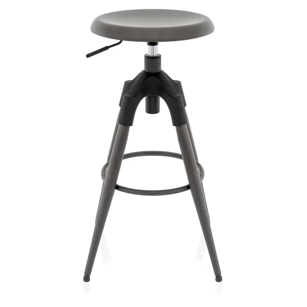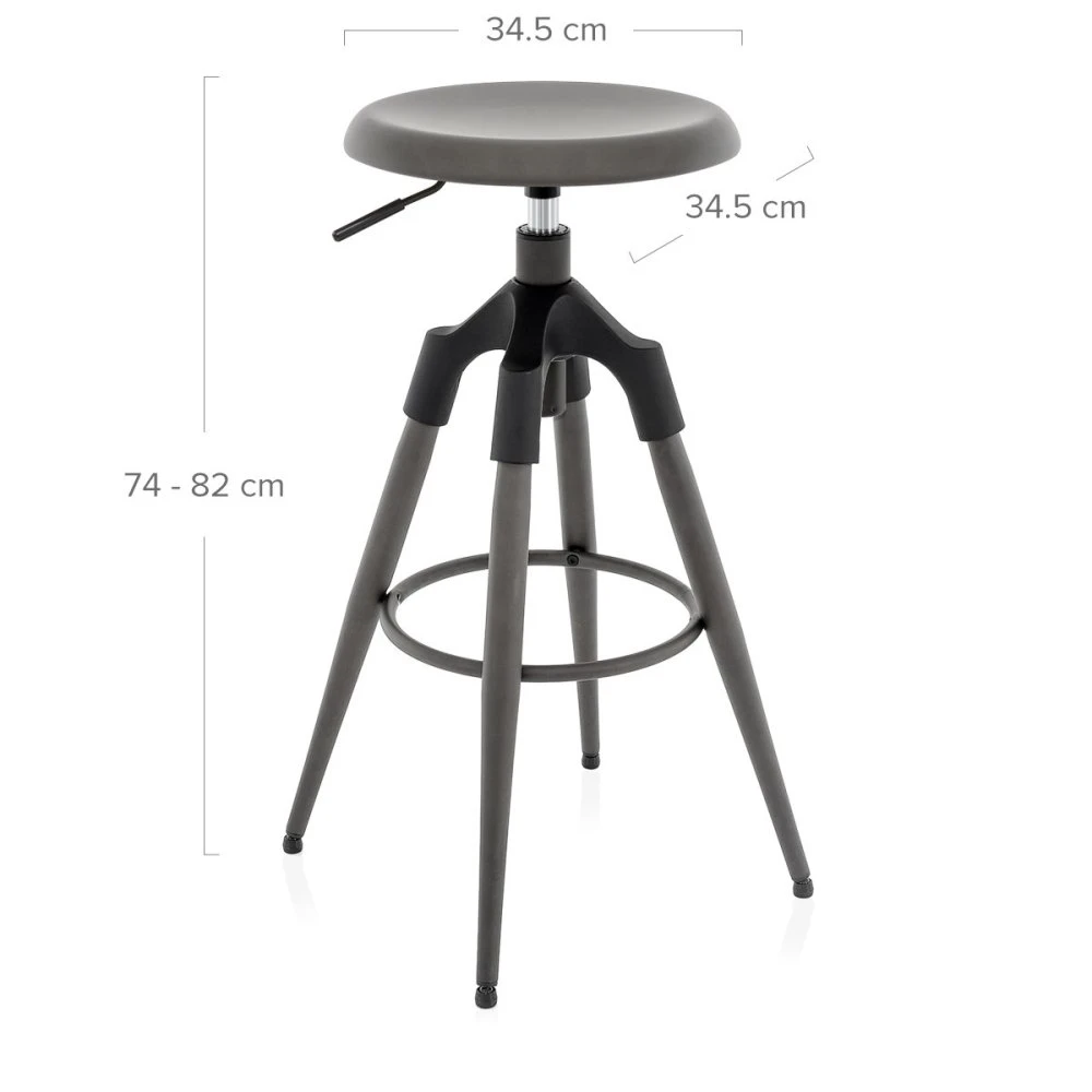 Der Onyx Barhocker ist eine moderne Interpretation eines industriell inspirierten Designs. Sein höhenverstellbarer Rahmen und die schwenkbare Sitzfläche bieten eine praktische und vielseitige Sitzmöglichkeit für jede Kücheninsel. Ein Muss für alle, die ihre Küche modernisieren möchten. Der abgerundete Sitz zeichnet sich durch ein glattes und rundes Design aus, das sich leicht drehen lässt. Seine schlanke und kompakte Form ohne Rückenlehne ist der Gipfel der Modernität und verleiht Ihrer Einrichtung sofort einen zeitlosen Touch, während die minimalistische Konstruktion eine platzsparende Ästhetik schafft. Dieser Hocker lässt sich um Handumdrehen verstauen, wenn er gerade nicht im Einsatz ist. Das markante vierbeinige Gestell verfügt über einen Gasdruckfedermechanismus, mit dem Sie die Höhe und Drehung Ihres Sitzes ganz einfach anpassen können. Das schwarz pulverbeschichtete Oberteil sorgt für einen eleganten, industriellen Look, während die dazu passenden Schutzkappen dafür sorgen, dass Ihre Böden geschont werden.