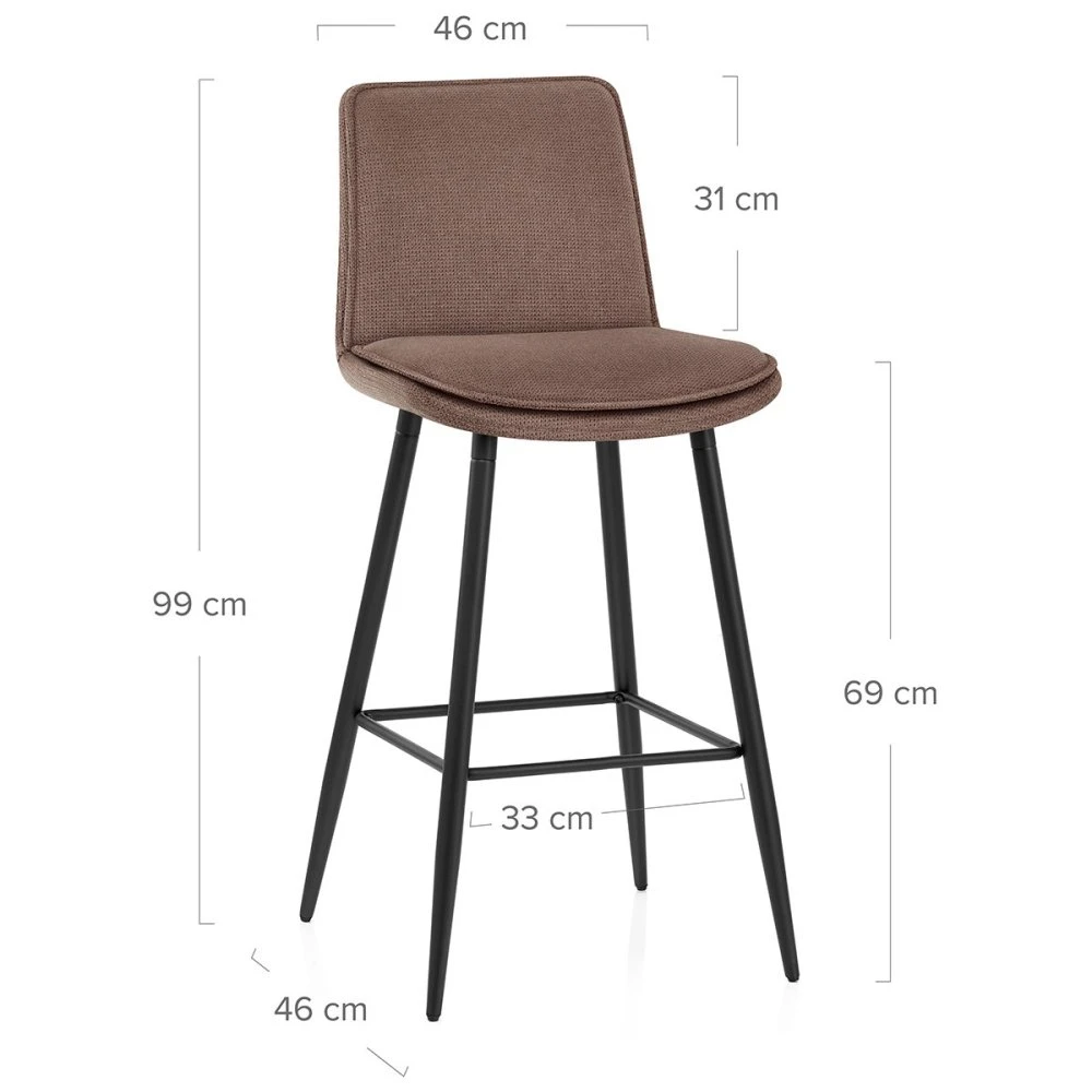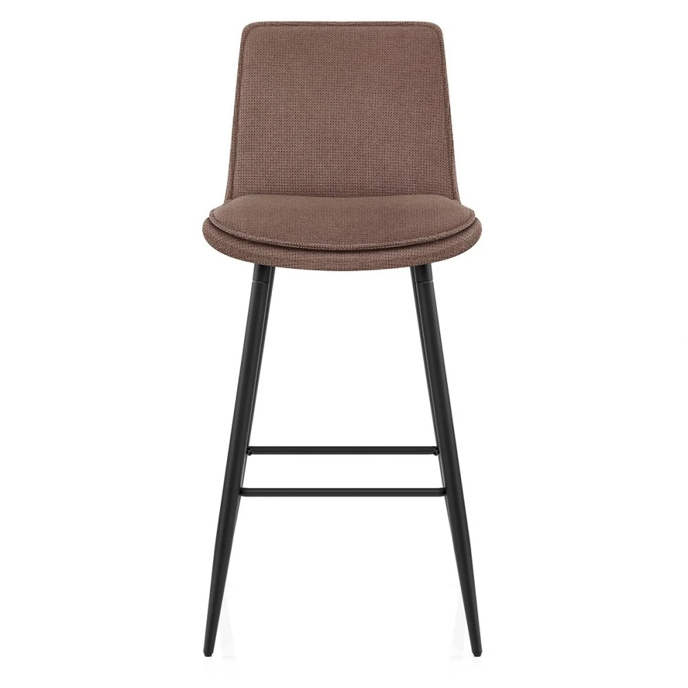 Ein absolut modernes Stück mit dynamischen Flair, das sich in jede Umgebung einfügt. Der Abi Stoff-Barhocker hat ein zeitgenössisches Design, das vielseitig genug ist, um in jede Küche oder Hausbar integriert zu werden. Der glatte Stoffsitz verfügt über eine ergonomische L-förmige Struktur, eine halbhohe Rückenlehne und ein doppelt gepolstertes Sitzkissen für ultimativen Komfort. Die Paspelnaht oben auf den Polstern sorgt für die nötige Stilnote. Die rechteckigen Metallbeine des Barhockers sind in klassischem satiniertem Schwarz gehalten. Die robuste Konstruktion umfasst drei röhrenförmige Verstrebungen, die die vier Beine miteinander verbinden und eine Ablagefläche für die Füße beim Sitzen bieten. Schutzkappen runden die Konstruktion ab und schützen Ihren Fußboden vor Kratzern und Schrammen.