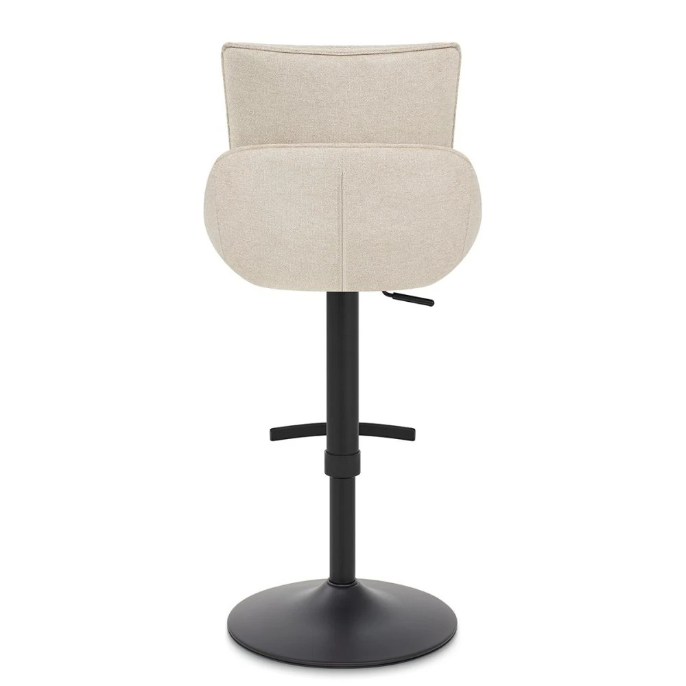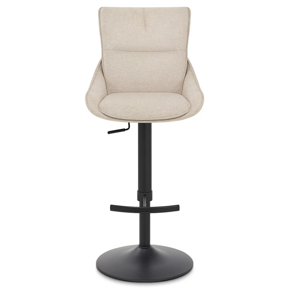 Der Creed Barhocker ist ein stilvoller und moderner Barhocker, perfekt für jede Küchentheke. Das einzigartige und flippige Design besticht durch seine luxuriöse Note. Der Creed eignet sich perfekt für Gäste und wird an jeder Küchentheke für Gesprächsstoff sorgen. Die hohe Rückenlehne besteht aus einem eingesetzten Kissen und wird durch ein mit Nähten versehenes Design unterbrochen. Diese fließt nach unten und geht in ein dicht gepolstertes Kissen über, das sich an der Unterseite der umlaufenden Außenschale befindet. Der gesamte Sitz ist mit einem beruhigenden beigen Stoff bezogen und hat geflügelte Seiten und paspelierte Rändern Unter der Sitzfläche befindet sich ein stabiles Metallgestell, das in mattem Schwarz gehalten ist, was den eleganten und modernen Look des Barhockers unterstreicht. Der Küchenhocker ist mit einem Gasdruckfeder-Mechanismus ausgestattet, der eine einfache Höhenverstellung und eine 360-Grad-Drehung ermöglicht. Eine geschwungene T-Bar-Fußstütze bietet bequemen Halt, und die Schutzkappen verhindern Schäden an Ihren Fußböden.