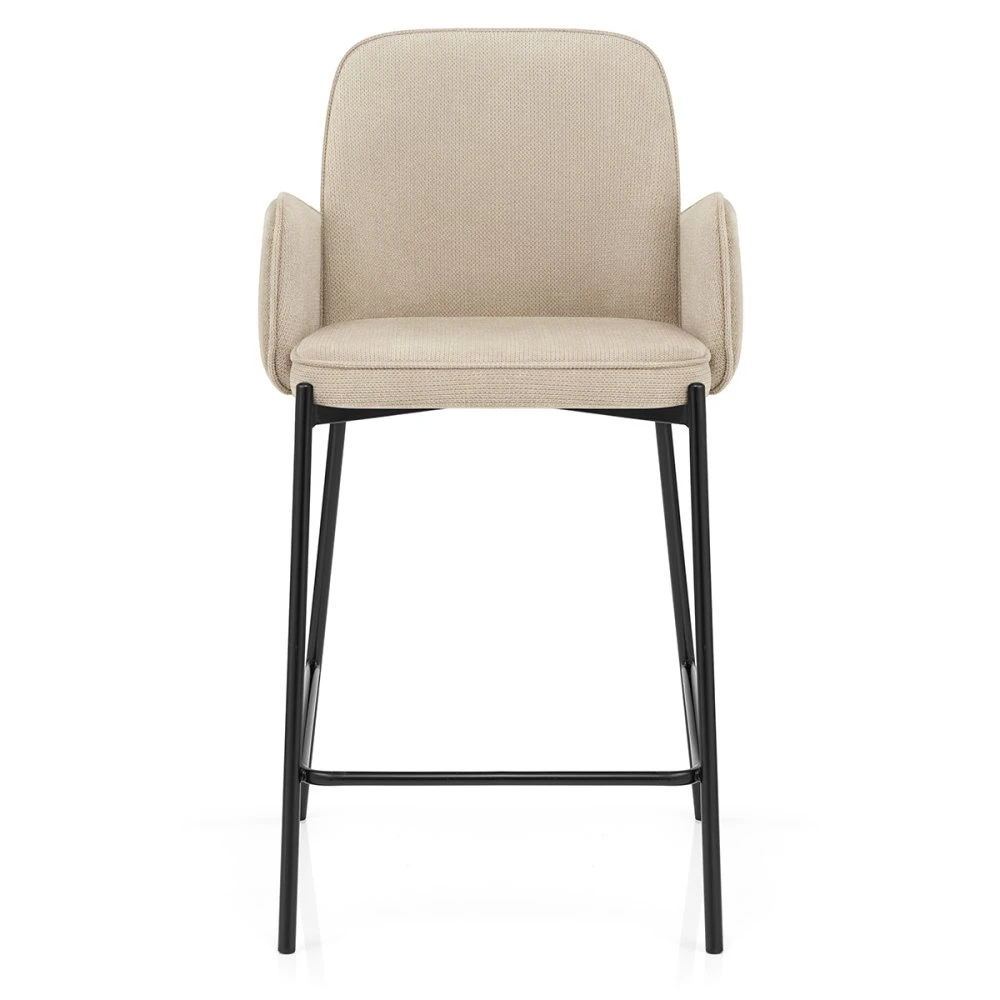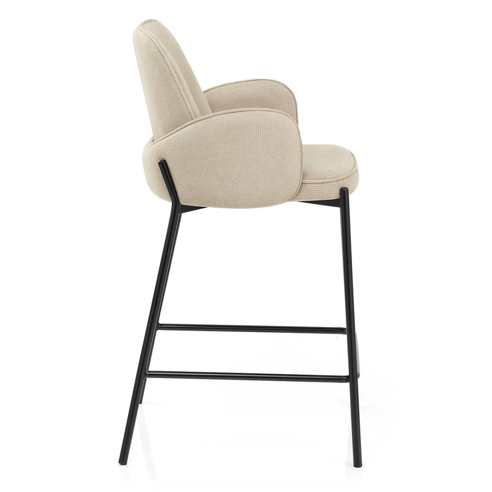 Der Jarvis Barhocker setzt einen neuen Maßstab in Sachen Qualität. Das Design und der Komfort des Hockers sind unverkennbar retro und modern, und Sie werden kaum eine andere Sitzgelegenheit für Ihre Küchentheke finden, die sich so gut anfühlt. Inspiriert von nostalgischen Sesseldesigns, hat der Sitz ein dick gepolstertes, breites Sitzpolster, das mit der hohen und geräumigen Rückenlehne verbunden ist. Zwei hohe Armlehnen an den Seiten reichen sind mit der Rückenlehne verbunden, um Sie rund herum zu stützen. Der Sitz ist mit einem wunderschönen grauen Stoff bezogen. Die vier Metallbeine werden durch drei Verstrebungen verstärkt und stützen die Sitzfläche, wobei sie sogar über die Sitzkante hinausreichen, um einen weiteren dekorativen Akzent zu setzen. Die Verstrebung der beiden Vorderbeine dient gleichzeitig auch als Fußstütze, und die Beine selbst sind mit Bodendübeln versehen, die das Risiko von Schäden an Ihren Fußböden reduzieren.