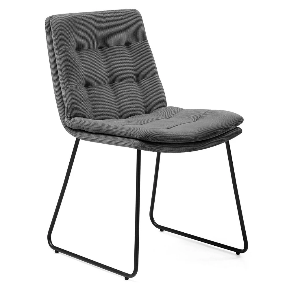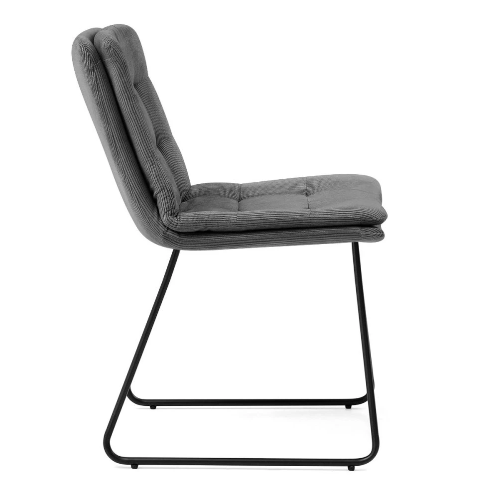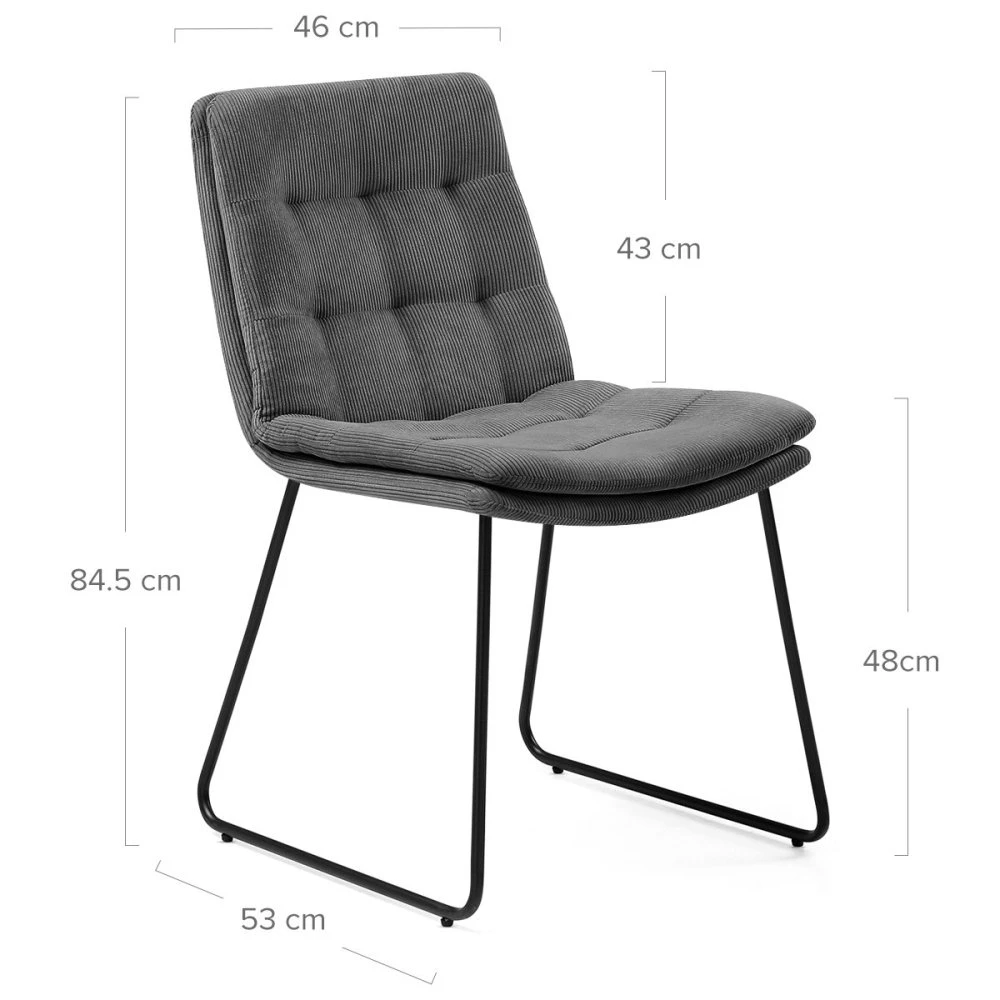 Holen Sie sich mit dem Riva stuhl einen modernen Touch in Ihre Küche. Das retro-inspirierte Design erinnert an den berühmten Eimerstuhl und kombiniert Stil, Luxus und Effizienz. Der Riva ist dazu bestimmt, ein Statement in Ihrem Zuhause zu setzen. Man beachte die dick gepolsterte Rückenlehne und Sitzfläche und den leicht geriffelten Stoff, der eine zeitlose Eleganz ausstrahlt, die durch die horizontalen Nähte und vertikalen Rüschen weiter verstärkt wird. Eine sanft geschwungene Sitzfläche lädt zum Zurücklehnen ein. Der Sitz wird von einem soliden Rohrrahmen getragen. Schwarz satinierte Beine kontrastieren perfekt mit dem helleren Stoff darüber und machen den stuhl zu einem echten Highlight. Die Säule mit t-förmiger Fußstütze verfügt über ein Schutzpolster, damit Ihre Fußböden nicht zerkratzen.