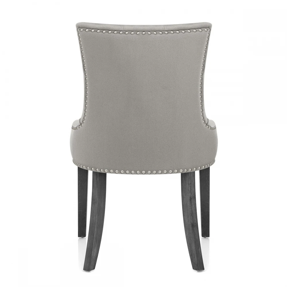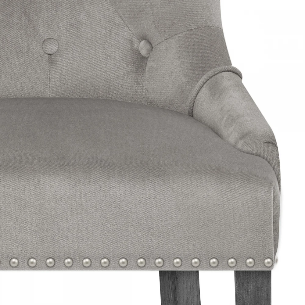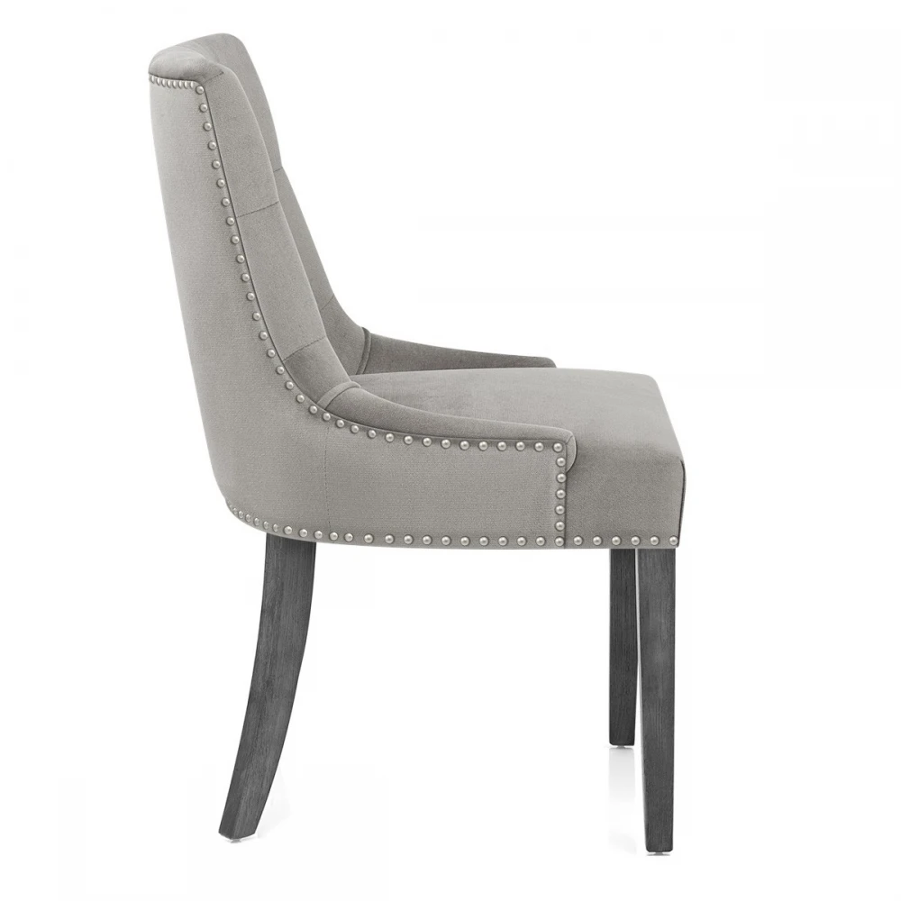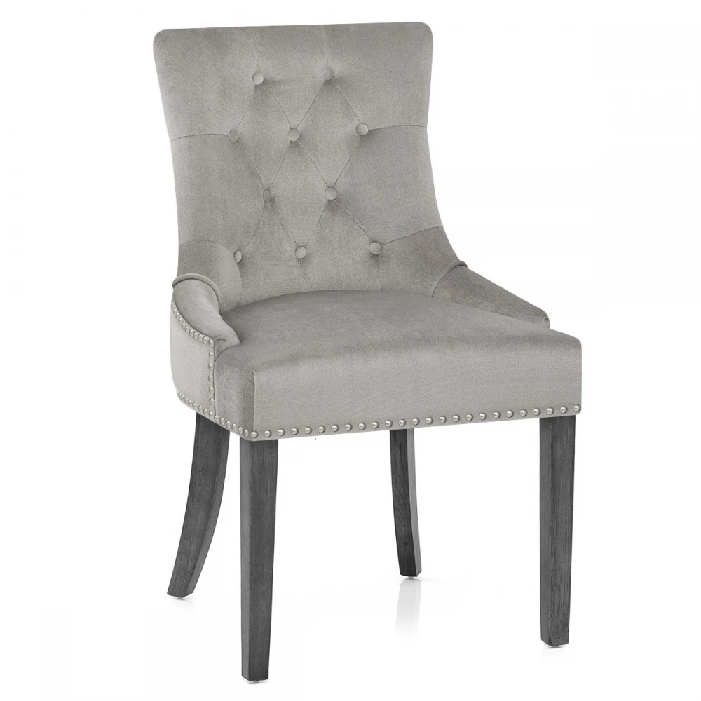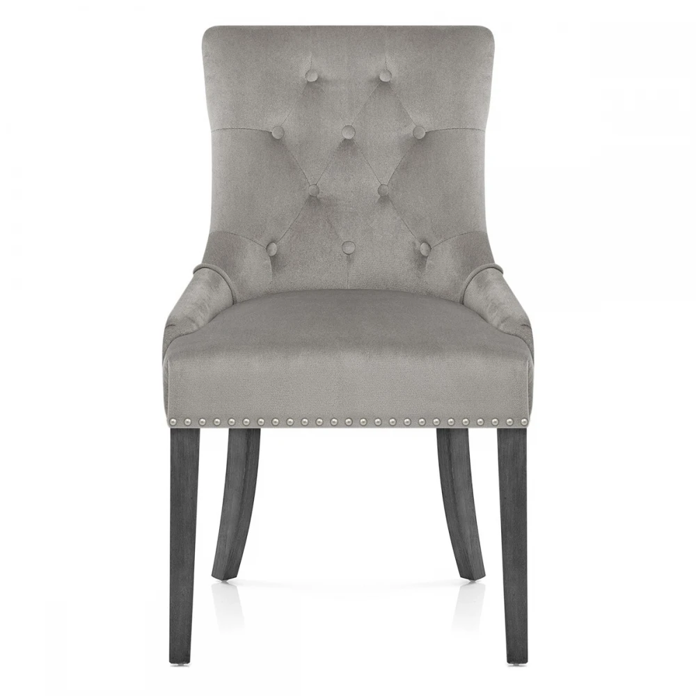 Der Etienne Esszimmerstuhl in grauem Samt ist ein hervorragendes Stück für den Essbereich, das Schlafzimmer und mehr. Eine weiche, graue Samtpolsterung bringt Eleganz in den Sitz, der mit einem gefederten und gegurteten Rahmen für fantastischen Komfort sorgt. Dieses Modell vereint einen hohen Rücken und ist mit Nieten auf der Rückseite sowie stilvollen gesteppten Knöpfen auf der Vorderseite ausgestattet. Die Beine aus massivem Holz, die den grauen Samt vervollständigen, haben ein einzigartiges graues Finish für einen Hauch von Modernität. Die Beine bilden einen stabilen Rahmen und sind mit Schutzstopfen verschlossen, um die Bodenflächen zu schonen.