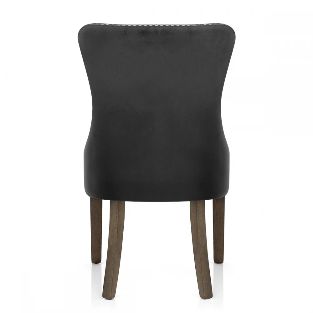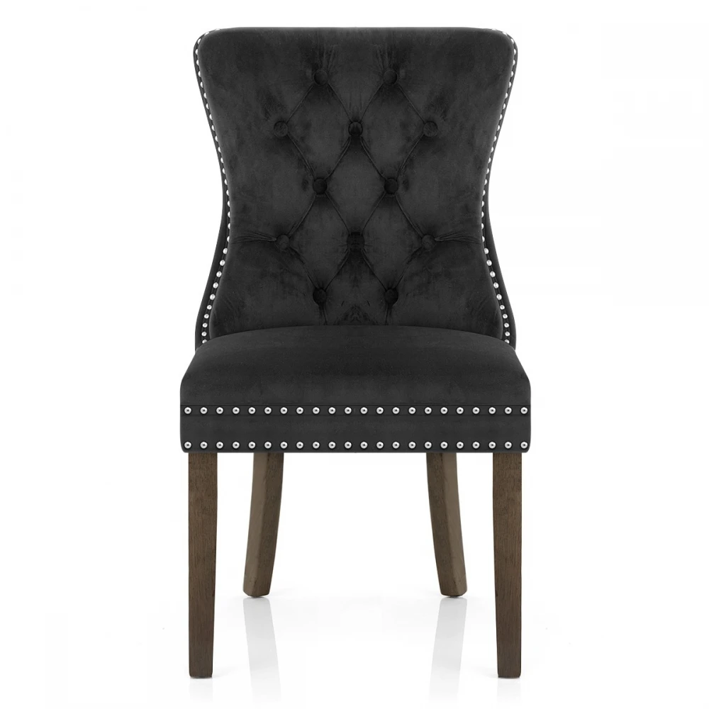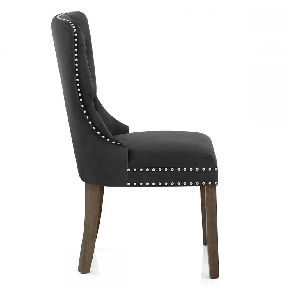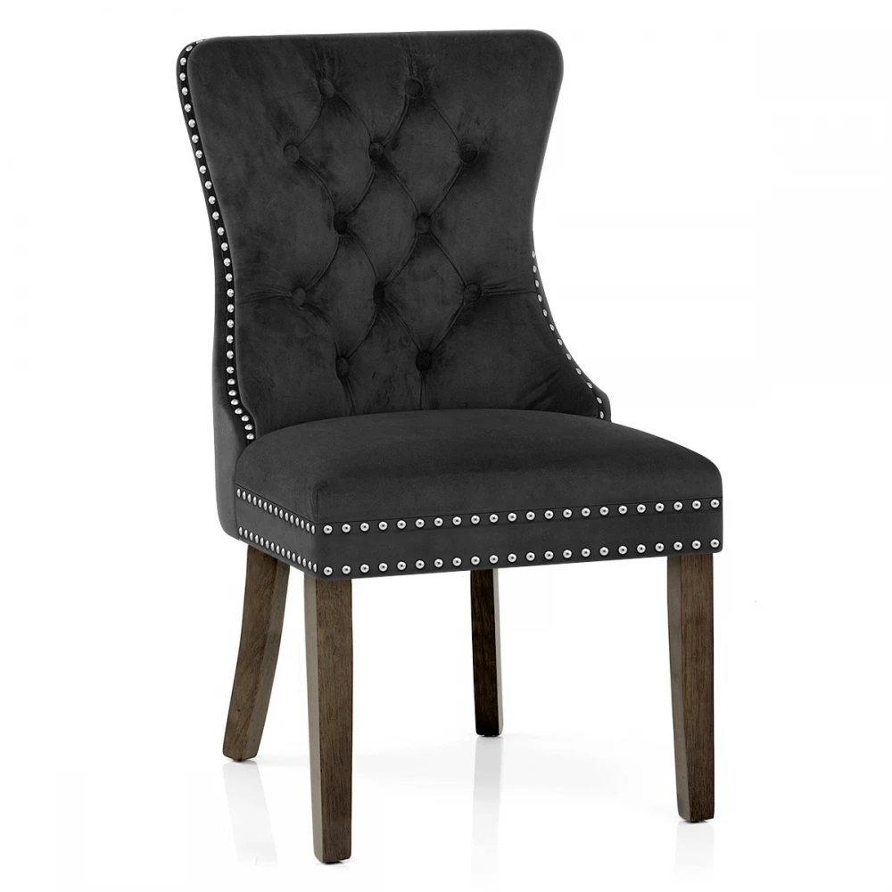Herrlich und majestätisch bringt der Kensington Esszimmerstuhl in Samt eine königliche Qualität auf den Esstisch. Der Sitz ist mit einem Rahmen aus Gurtband für einen ausgezeichneten Komfort ausgestattet und wird durch die Samtpolsterung weich betont. Gestepptes Knopfdetail fügt der hohen gebogenen Rückenlehne klassischen Stil hinzu, während glänzender Chrombolzenrand den gesamten Sitz erhöht. Ein massiver Holzrahmen stützt den Sitz und besteht aus vier Beinen mit einer reichen dunklen Holzoberfläche für traditionelles Flair. Außerdem ist jedes Bein mit einem Schutzstopfen versehen, um die Bodenflächen zu schonen.