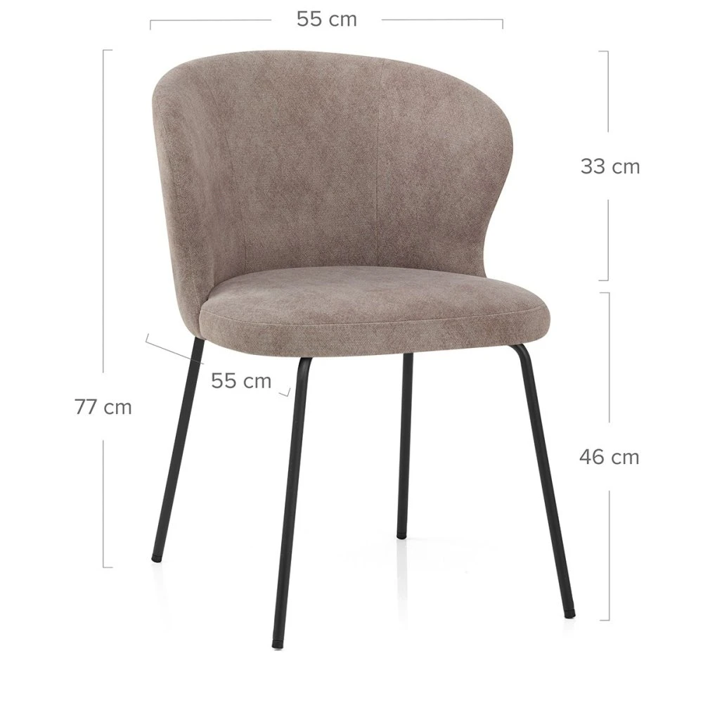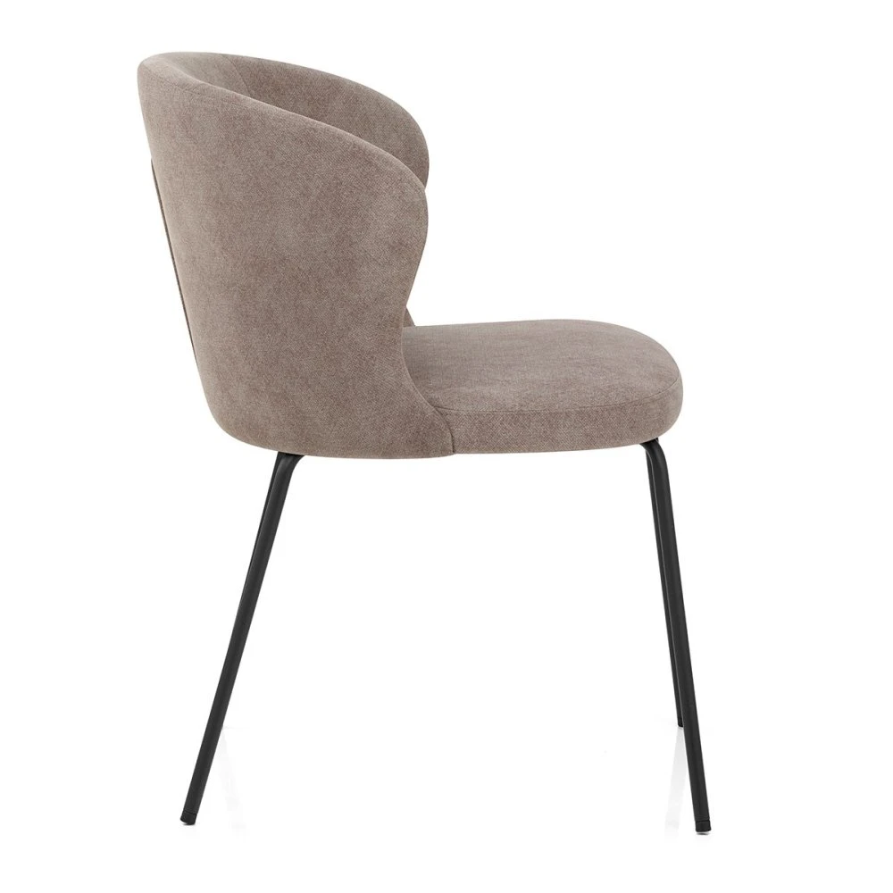 Der Brooklyn Esszimmerstuhl mit Stoffbezug ist ein Paradebeispiel für müheloses Design mit maximaler Wirkung. Er ist einfach und doch auffällig. Der moderne Stuhl fügt sich wunderbar in Ihr Zuhause ein, ob in Ihrer Küche, Ihrem Esszimmer oder als Beistellstuhl. Die dicht gepolsterte Sitzfläche und eine umschließende, mittelhohe Rückenlehne sorgen dafür, dass der Komfort nicht zu kurz kommt. Die innere Rückenlehne ist durch zwei Linien mit vertikalen Nähten in drei Abschnitte unterteilt und bietet höchsten Komfort und Halt. Die gesamte Sitzfläche ist mit einem zeitlosen Stoff bezogen, der an der Außenseite mit einer geschwungenen Ziernaht versehen ist. Die massiven, schwarz pulverbeschichteten Metallbeine verjüngen sich anmutig bis zum Boden und verleihen dem Stuhl so noch mehr Charme. Damit Ihre Böden nicht zu Schaden kommen, wurden die vier Stuhlfüße fachmännisch mit Schutzkappen versehen.