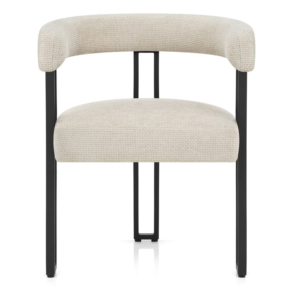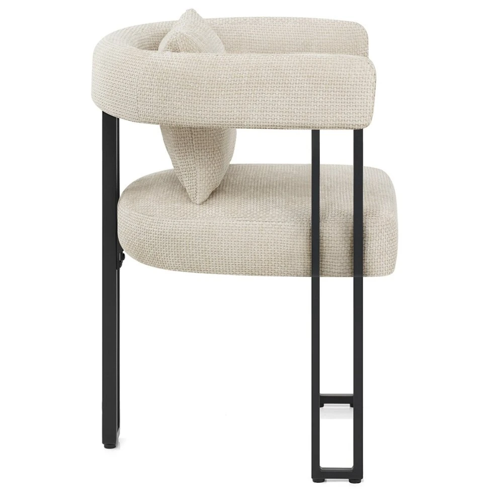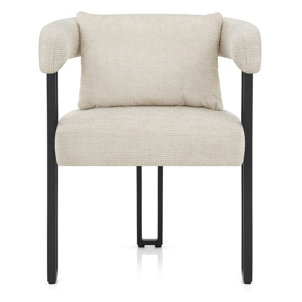 Der kultige Gigi Esszimmerstuhl wird allen Bedürfnissen gerecht und ist die perfekte Mischung aus Stil und Individualität. Perfekt für moderne Interieurs konzipiert, besticht er durch sein vielseitiges Design, das in verschiedensten Räumen zur Geltung kommt. Das dicke gepolsterte Sitzkissen, die mittelhohe Rückenlehne und Armlehnen sind perfekt arrangiert, um Aufmerksamkeit zu erregen. Aber dieser Stuhl ist nicht nur was fürs Auge, sondern auch bequem. Der Stuhls wird von drei schwarz pulverbeschichteten, röhrenförmigen Metallbeinen getragen, die zu seiner einzigartigen Geometrie beitragen. Damit der Stuhl keine Spuren auf dem Boden hinterlässt, sind an jedem Bein zwei Schutzpolster angebracht.