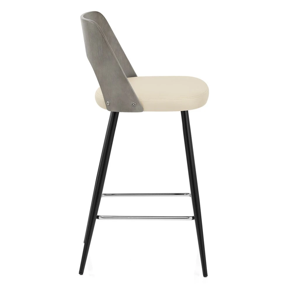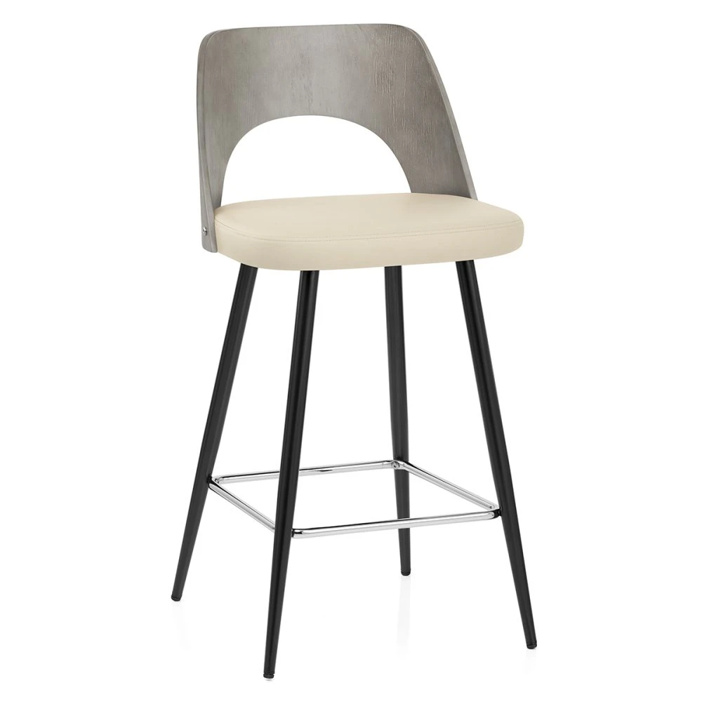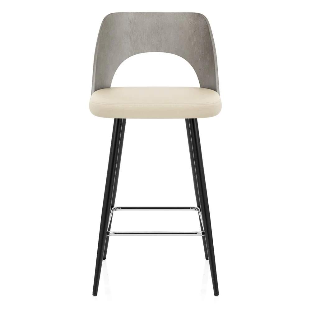 Grauer Holzbarhocker Mit Kunstleder – Leo
