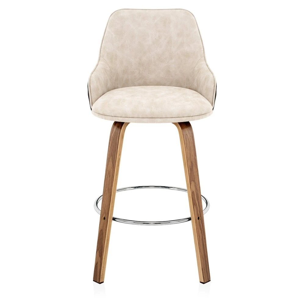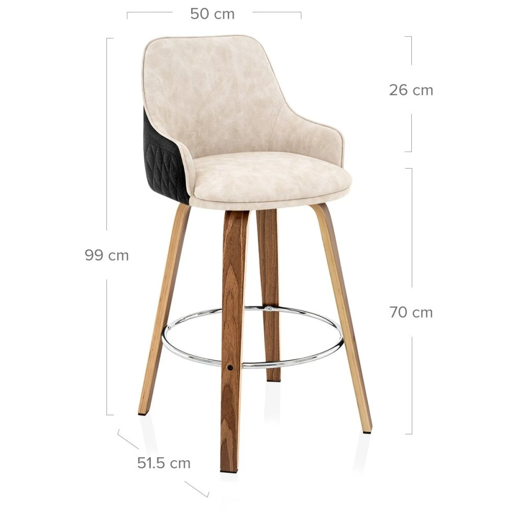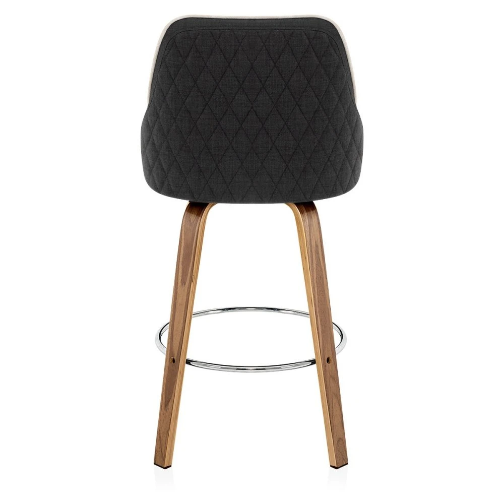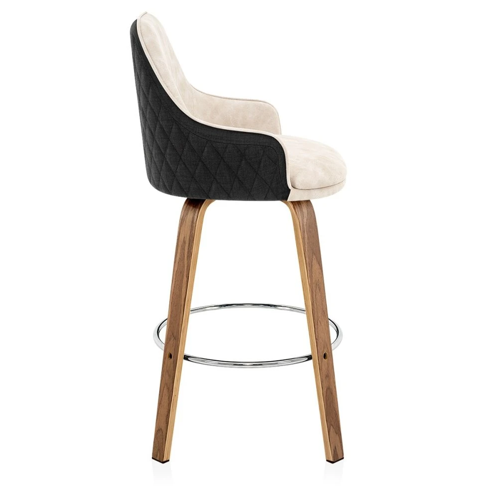Der Piper Barhocker ist ein wunderschönes, einfaches, zeitgenössisches Möbelstück, das die perfekte Balance zwischen Komfort und Stil trifft. Mit seinem klaren und modernen Design passt dieser Hocker zu verschiedensten Einrichtungsstilen. Die zweifarbige Sitzfläche ist mit einem bequemen und stützenden Innenbezug aus Kunstleder, einem Stoffbezug mit gesteppter Rautennaht an der Rückenlehne und einer Paspelierung, die bis zu den geflügelten Seiten verläuft, ausgestattet. Der gepolsterte Sitz bietet höchsten Komfort und lädt zum Verweilen ein. Das vierbeinige Bugholzgestell in stilvollem Walnuss hat eine feste Höhe und ist so für alle Standard-Küchentheken geeignet. Eine runde Fußstütze aus Chrom bietet zusätzlichen Komfort, während Bodenstopfen für Stabilität sorgen und helfen, Ihren Fußboden vor Kratzern und Flecken zu schützen.