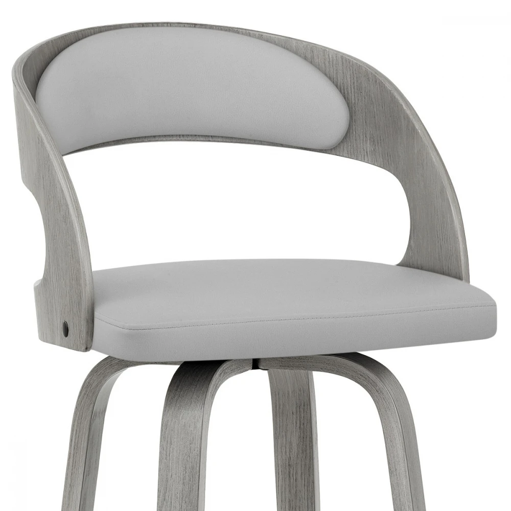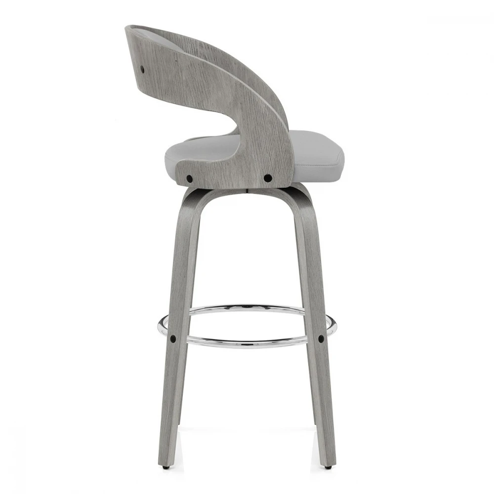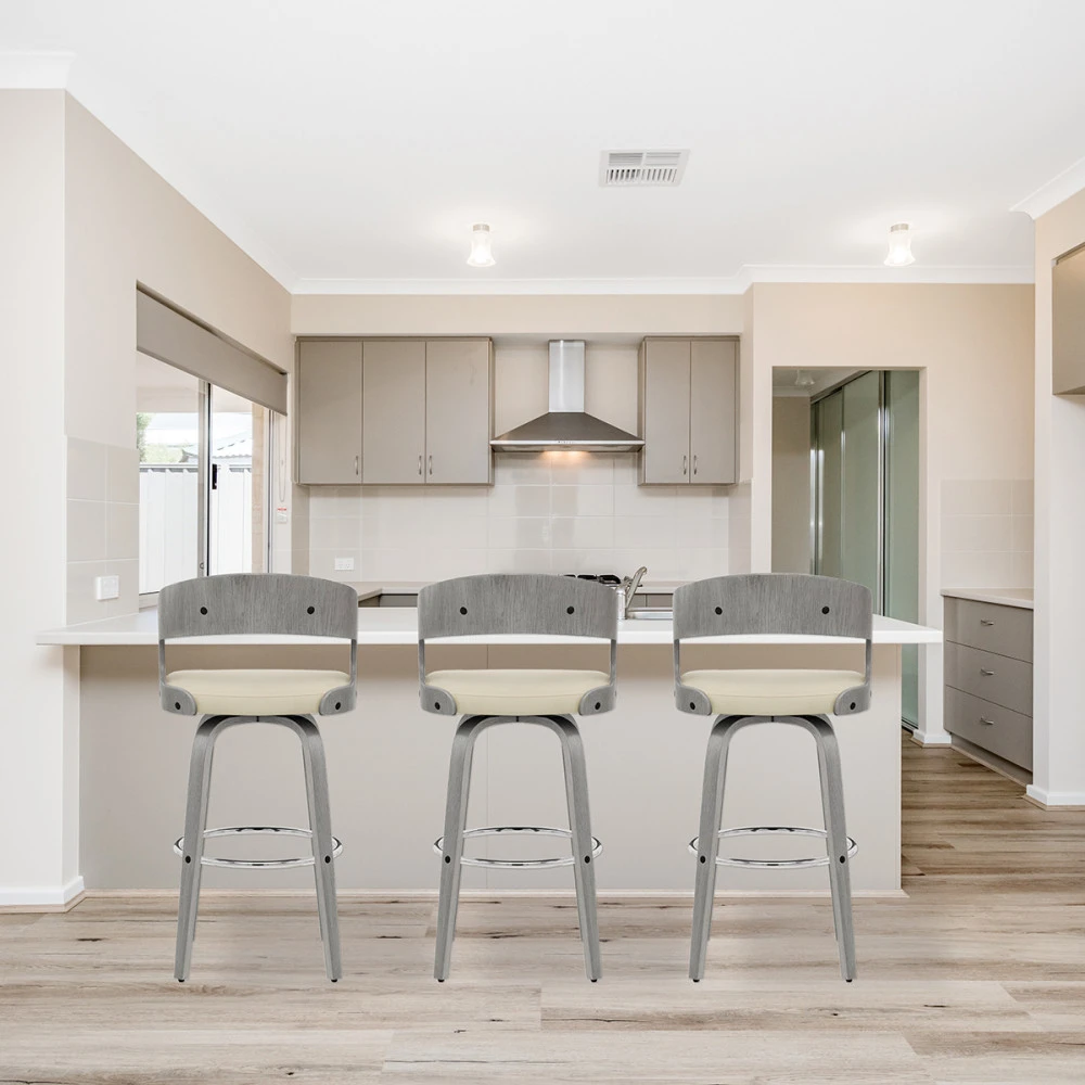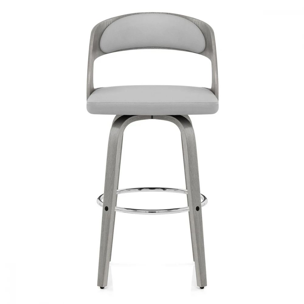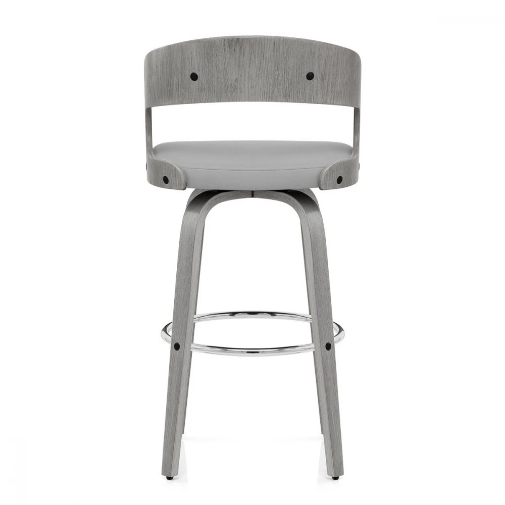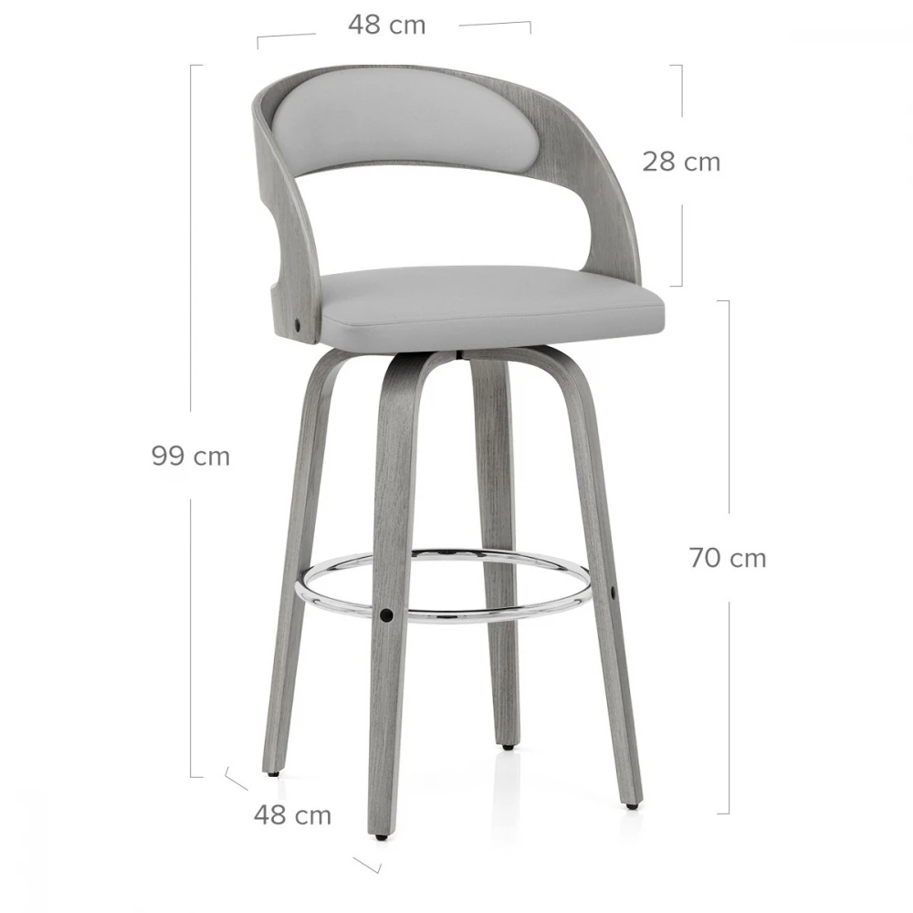 Der Kunstleder Barhocker Alicia ist eine elegante Addierung für Ihre Küche oder Esszimmer. Der Kunstlederpolster auf der Bugholz Rückenlehne lädt Sie zum entspannen ein und ergänzt der mit selben Überzug, gemütliche Sitzfläsche. Um besseren Zugang an Ihrer Bar zu ermöglichen ist der Alicia Hocker mit einen 360-Grad Schwenken erstellt. Der vierbeinige Holzgestell bekommt einen Antik-Grauen Finish, das mit dem Kunstleder harmonisch passt. Um Kratzer auf Ihre Böden zu vermeiden befindet sich unter jedem Fuβ einen Schutzpolster.