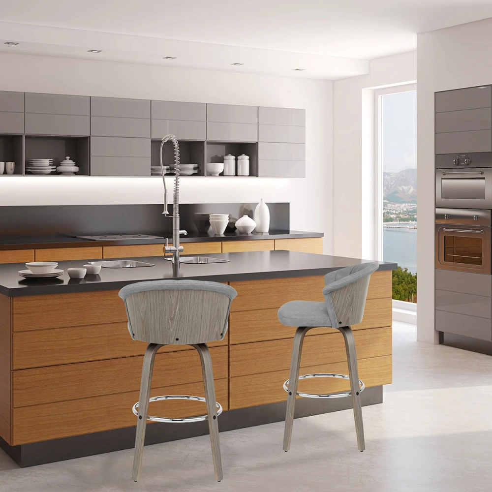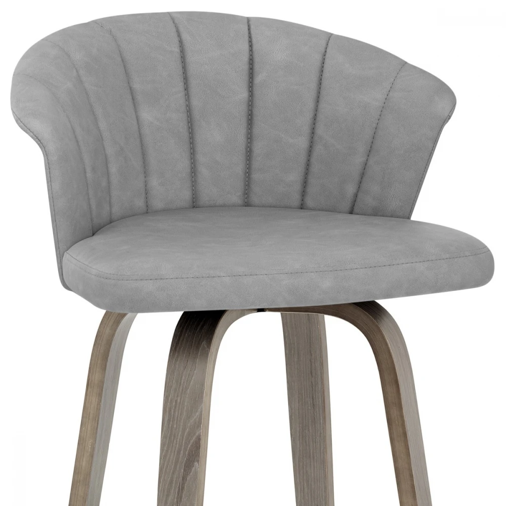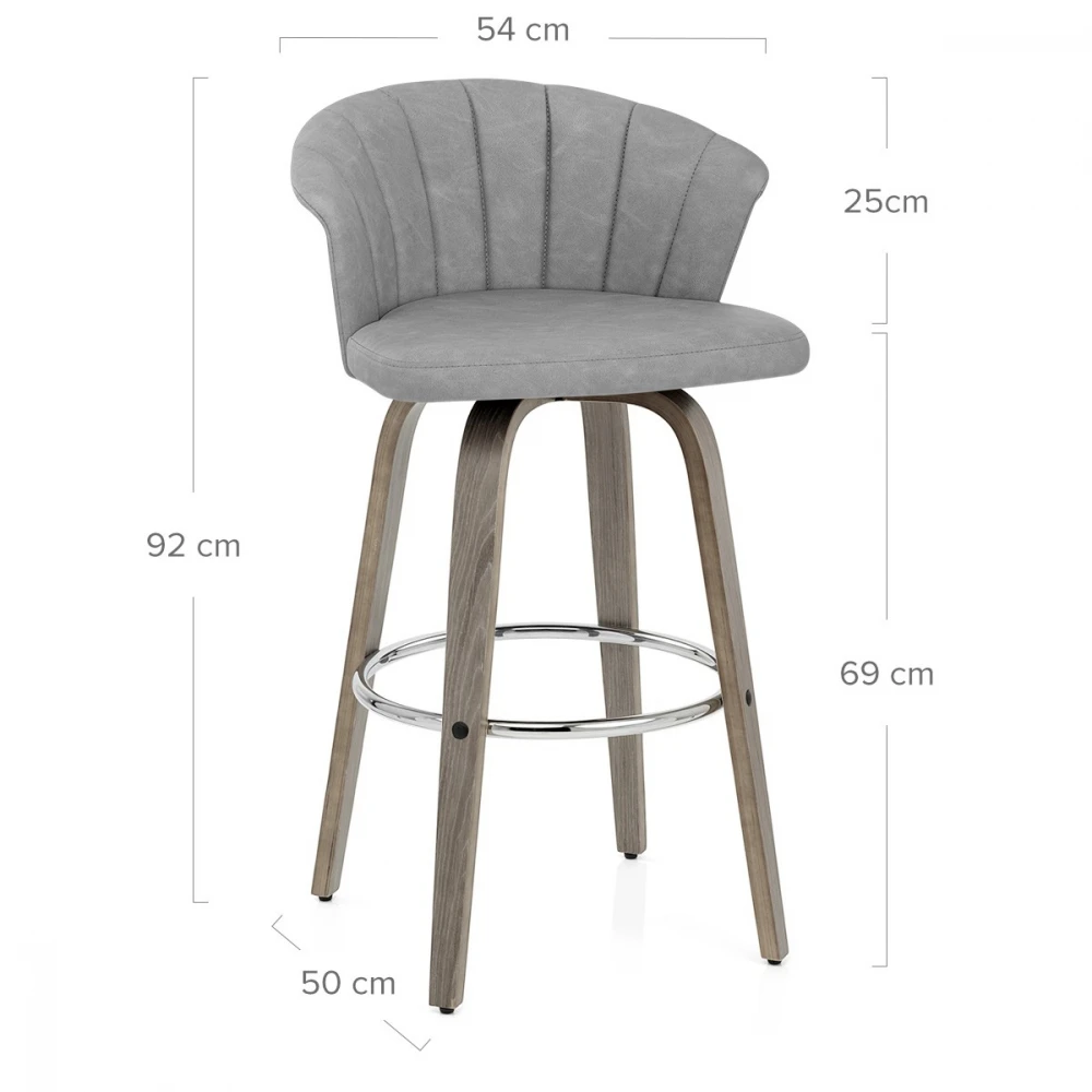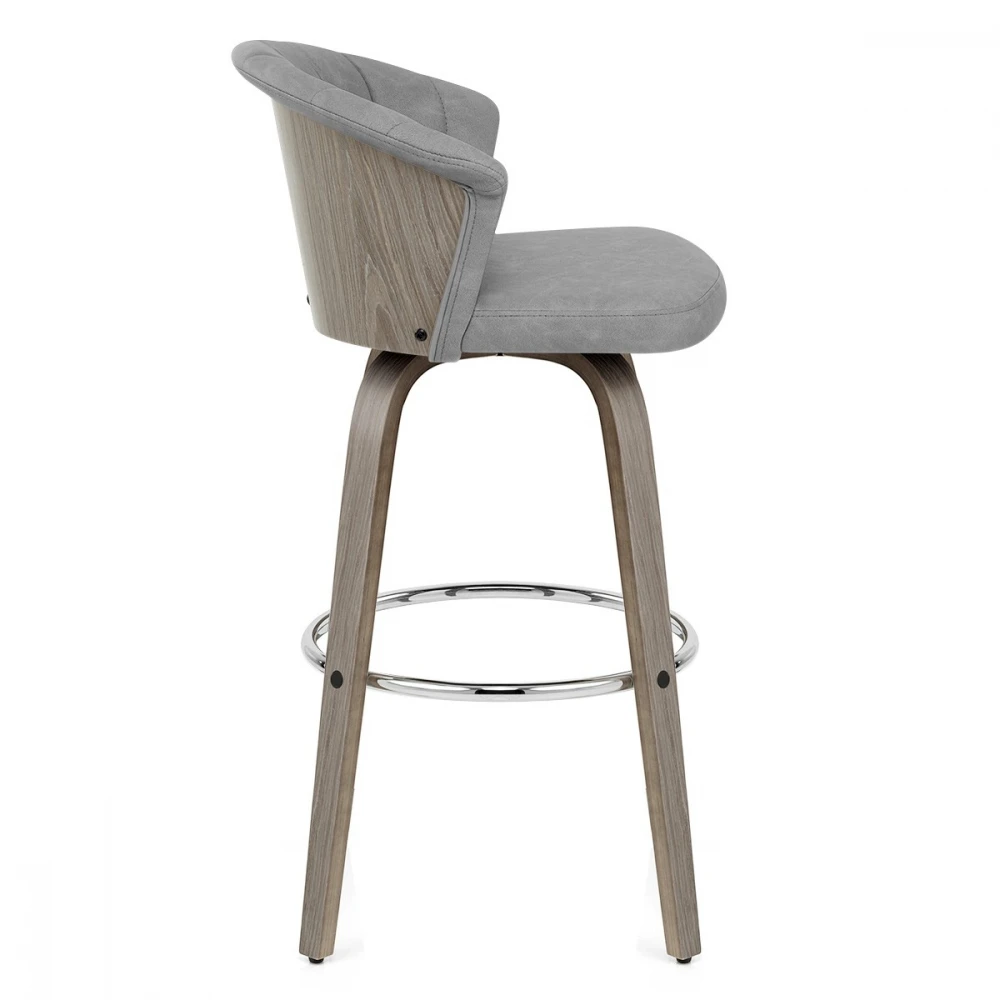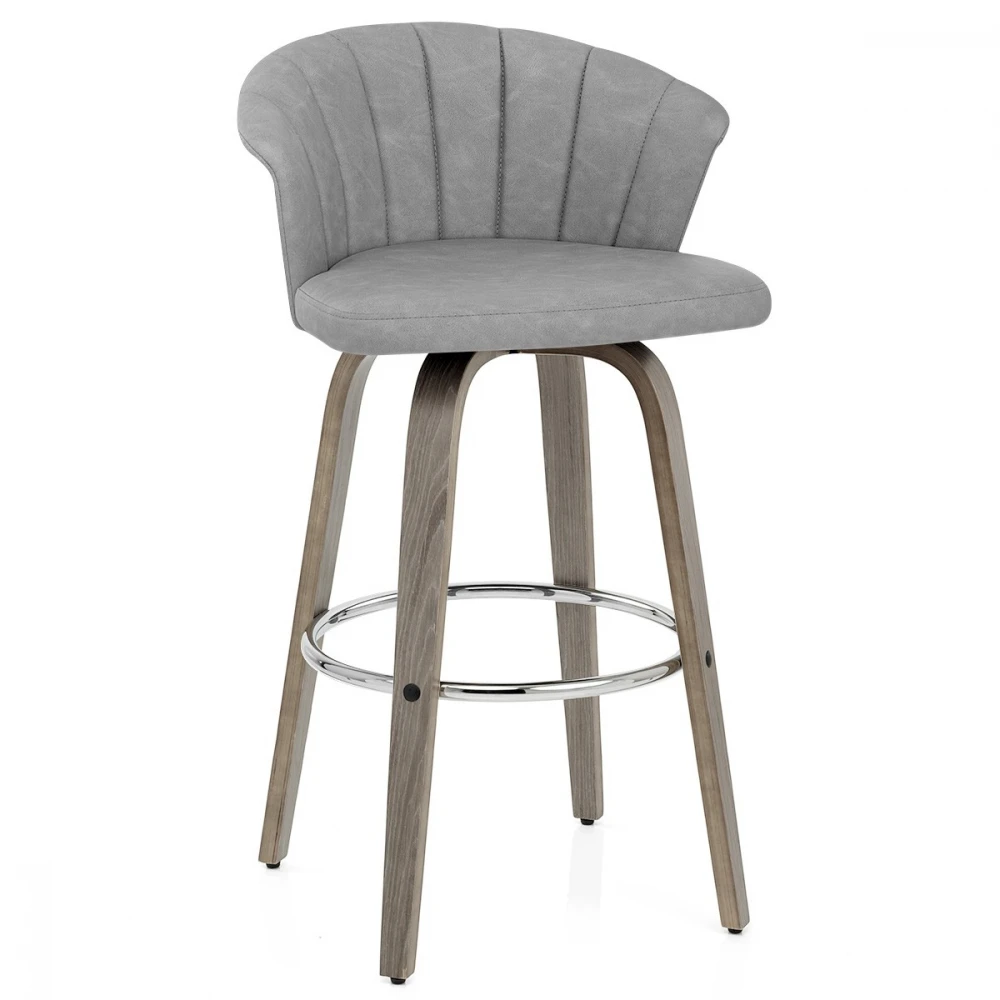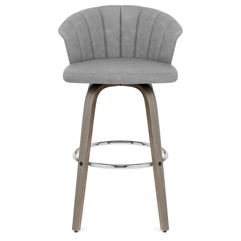 Der Kunstleder Barhocker Antik Concerto ist eine elegante Ergänzung für Ihre Küchenbar. Der Sitz ist aus antikem Kunstleder gefertigt. Der praktische Sitz ist so konzipiert, dass er Ihre Aufmerksamkeit auf sich zieht und eine gewölbte Rückenlehne bietet. Graues Bugholz umgibt die Rückseite des Sitzes und bildet einen Kontrast zum Kunstleder. Der schönem Barhocker ist mit einer polierten Chromfußstütze für zusätzliche Stabilität hoch. Der Sitz ist über eine Drehplatte mit dem Gestell verbunden, die eine 360-Grad-Drehung ermöglicht und eine Drehfunktion für einen leichteren Zugang zu Ihrer Bar bietet. Unter den Beinen befinden sich Schutzstopfen, um Ihre Böden sauber zu halten.