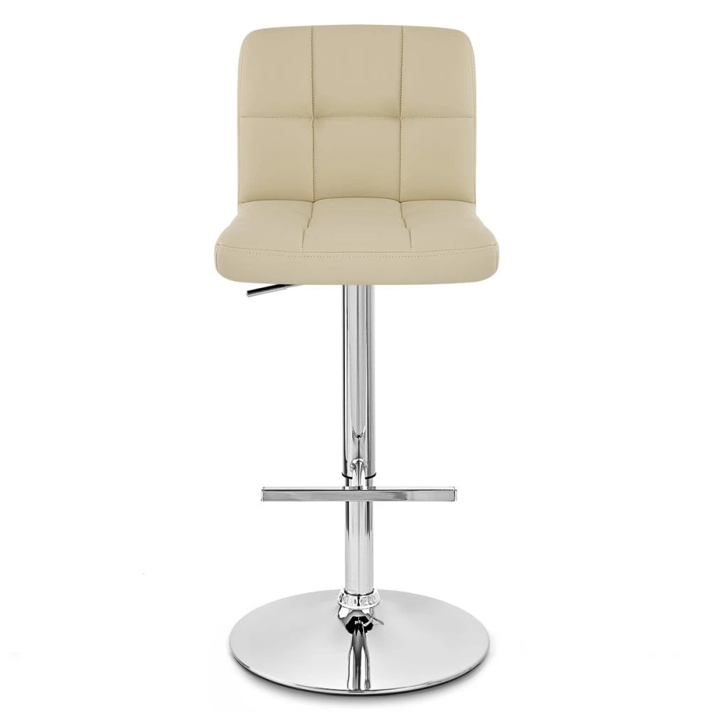 Dieser schicke Barhocker im Retro-Stil ist mit gepolstertem schwarzen oder grauem Kunstleder überzogen. Das gesteppte Muster ist ein absoluter Blickfang und der Metallrahmen in glänzender Chromverspiegelung reflektiert wunderschön das Licht. Der Barhocker Grid verfügt über eine t-förmige Fußstütze, einen 360 Grad Drehmechanismus und eine Gasdruckfeder für flexible Höhenverstellung. Ihr Boden wird durch den Gummischutzring unter dem Barhockerfuß geschützt werden.