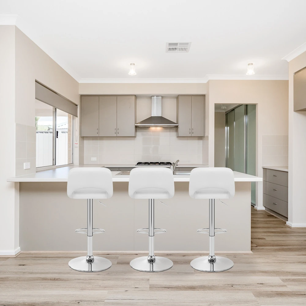 Der Hugo bietet einen äußerst bequemen Sitz aus Kunstleder, dessen auffällige Polsterung zusätzlich mit einer halbmondförmigen Trennwand zwischen dem gepolsterten Sitz und der hohen Rückenlehne des Hugo verziert ist. Die dichte Schaumstoffpolsterung und die anschmiegsame, sanft geschwungene Form bieten den gewünschten Halt. Zudem ist die Höhe beim Hugo stufenlos einstellbar und um 360° drehbar. Der gewölbte Rundsockel des Hockers ist passend zum restlichen Gestell verchromt und mit einem Bodenschutz versehen, um Kratzer und Abnutzungserscheinungen zu vermeiden. Alles in einem, verleihen diese Eigenschaften den Barhockern ein wilkommendes Maß an Praktikalität.