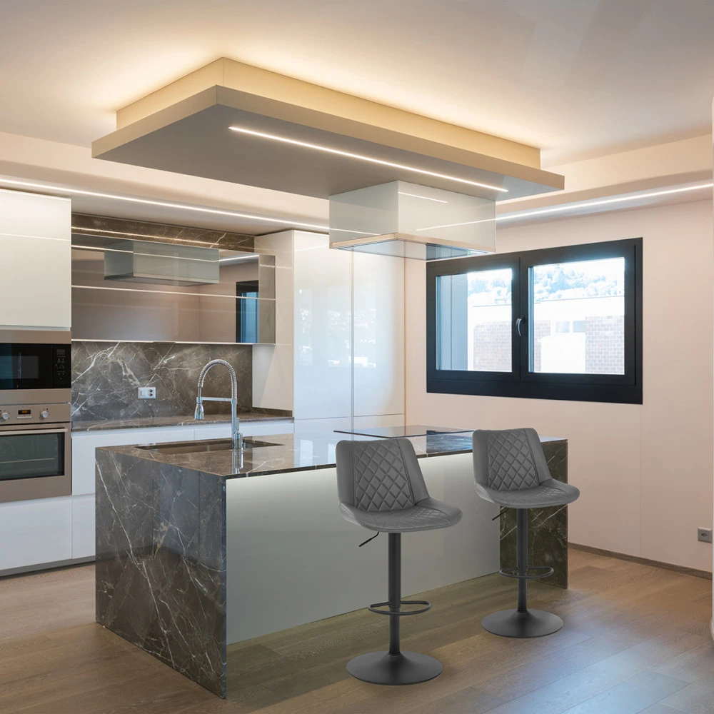 Der Barhocker Faro mit seinem raffinierten Design bietet eine elegante Atmosphäre. Bequem gepolstert, robust gebaut und mit einer eleganten, modernen Ästhetik versehen, können Sie sicher sein, dass der Faro ein wertvoller Bestandteil Ihrer Einrichtung ist. Die Sitzfläche ist in einem dezenten Kunstlederton gehalten, der für ein vielseitiges und modernes Aussehen sorgt. Die schicke schwarze Pulverbeschichtung macht den höhenverstellbaren Gasfederrahmen des Hockers ebenso schön wie funktionell. Der Sitz ist um 360 Grad drehbar und ermöglicht so einen einfachen Zugang zu einer Bar oder einem Tresen. Der runde Fuß mit einem Bodenschutz an der Unterseite ist noch praktischer und schützt den Boden vor Kratzern.