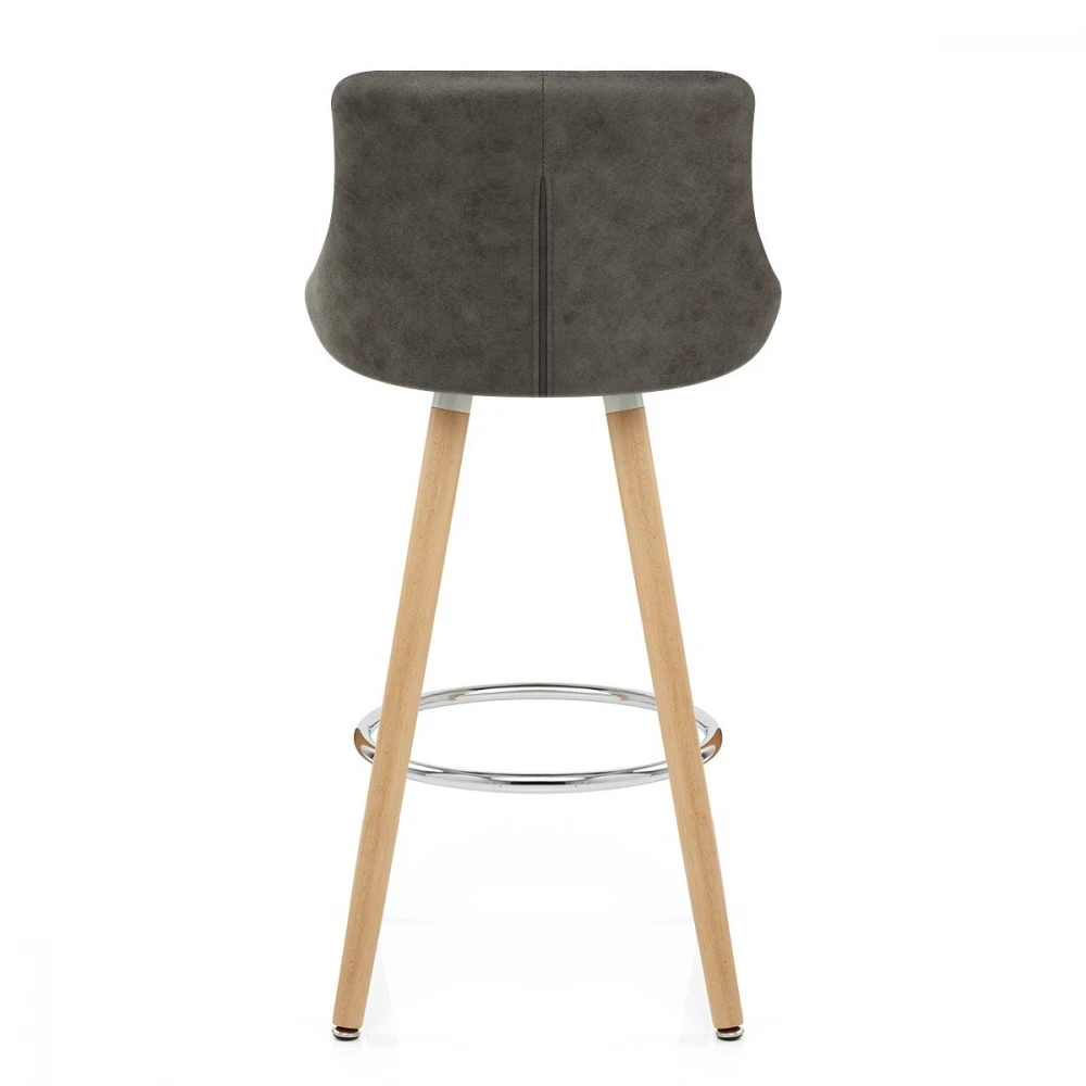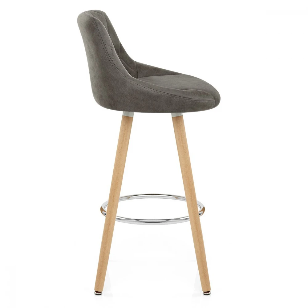 Unser Fuse Barhocker ist charmant und zugleich stilvoll, mit zeitgenössischem Sitzdesign lädt er zum Verweilen auf Höhe der Bar ein. Gerne werden Sie, mit Ihm in Ihrem Zuhause, Freunde und Familie dazu einladen, diese trendige Kombination aus Anmut und Unterstützung zu genießen. Der geschwungene Sitz ist mit einem antiken Kunstlederbezug verkleidet und auf der Innenseite mit Rautennähten versehen. Die erstklassige Polsterung sorgt für einen hohen Sitzkomfort und bietet so eine perfekte Gelegenheit zum Entspannen. Die vier Holzbeine des Barhockers verfügen über ein poliertes Eichenholz-Finish in attraktivem Kontrast zum Sitz. Diese Beine sind noch zusätzlich mit einer verchromten Fußstütze veredelt. Unter jedem Fuß befindet sich eine Schutzvorrichtung, die dazu beiträgt, die Oberflächen frei von Unebenheiten zu halten.