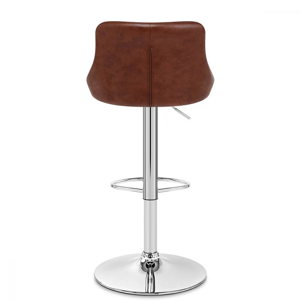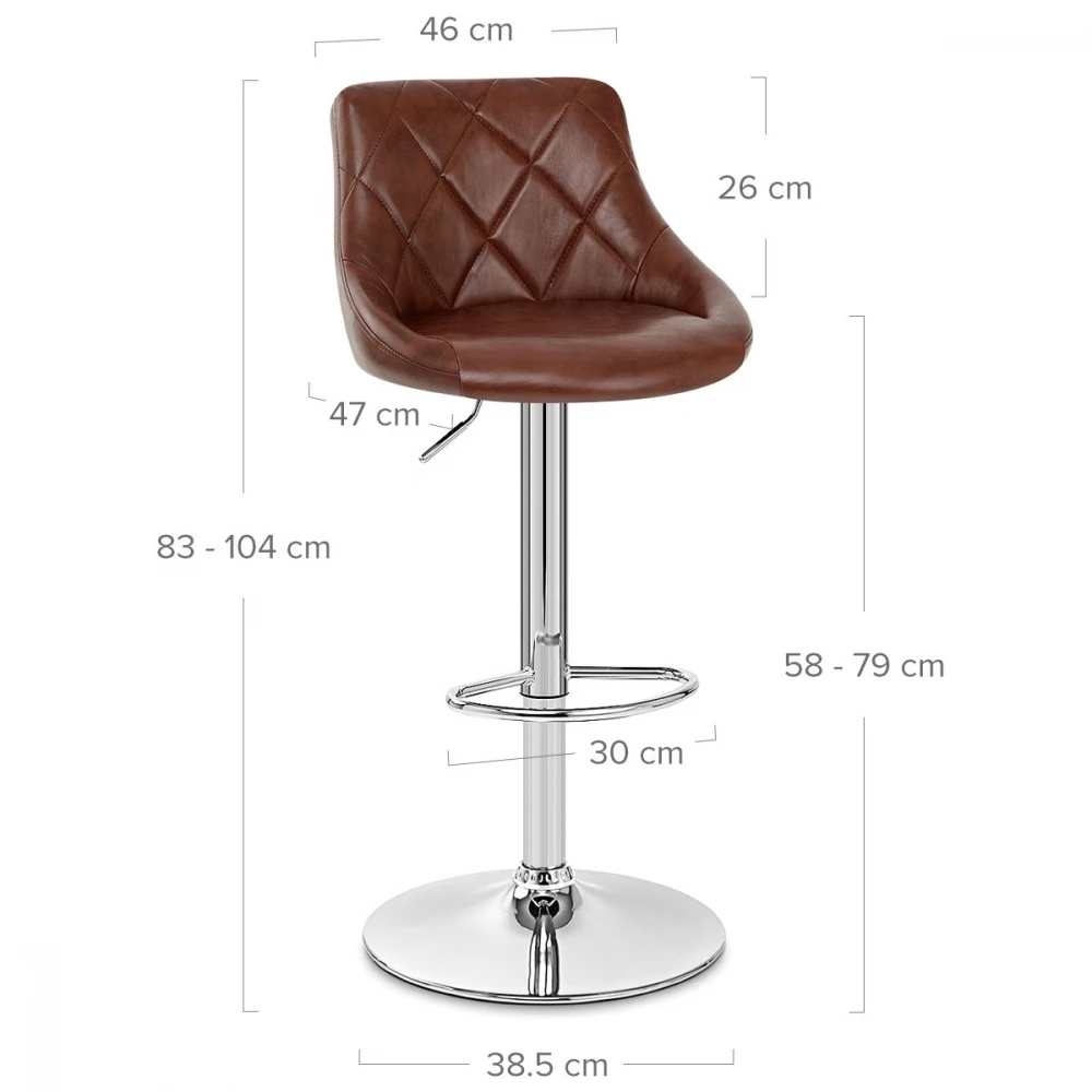 Der Hype Barhocker aus antikem Kunstleder ist zwar modern gebaut, aber für eine Mischung aus modernen und Retro-Einflüssen dekoriert, was zu einem exklusiven Stil führt. In einer Küche, an einer Frühstücksbar oder als Teil Ihres Essbereichs sieht der Hype überall gut aus. Durch die Ummantelung der Sitzfläche und die hohe Rückenlehne mit antikem Kunstleder wirkt der Hocker bewundernswert edel, ohne seine dynamische Ästhetik zu verlieren. Ebenso ansprechend ist das stabile verchromte Metallgestell, das aus einer Gasdruckfeder, einer Fußstütze und einem runden Kuppelbasis besteht. An der Unterseite der Basis befindet sich ein Bodenschutz, der vor Abnutzungserscheinungen und Markierungen schützt.